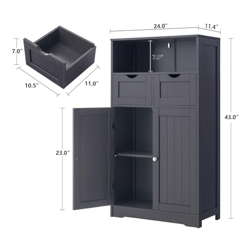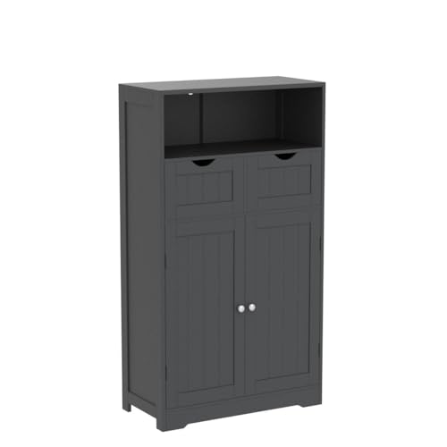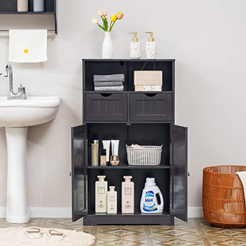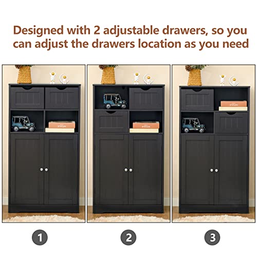 Iwell Large Storage Cabinet, Bathroom Cabinet with 2 Drawers & 2 Shelves, Cupboard, Bathroom Floor Cabinet for Living Room, Home Office, Natural & Black