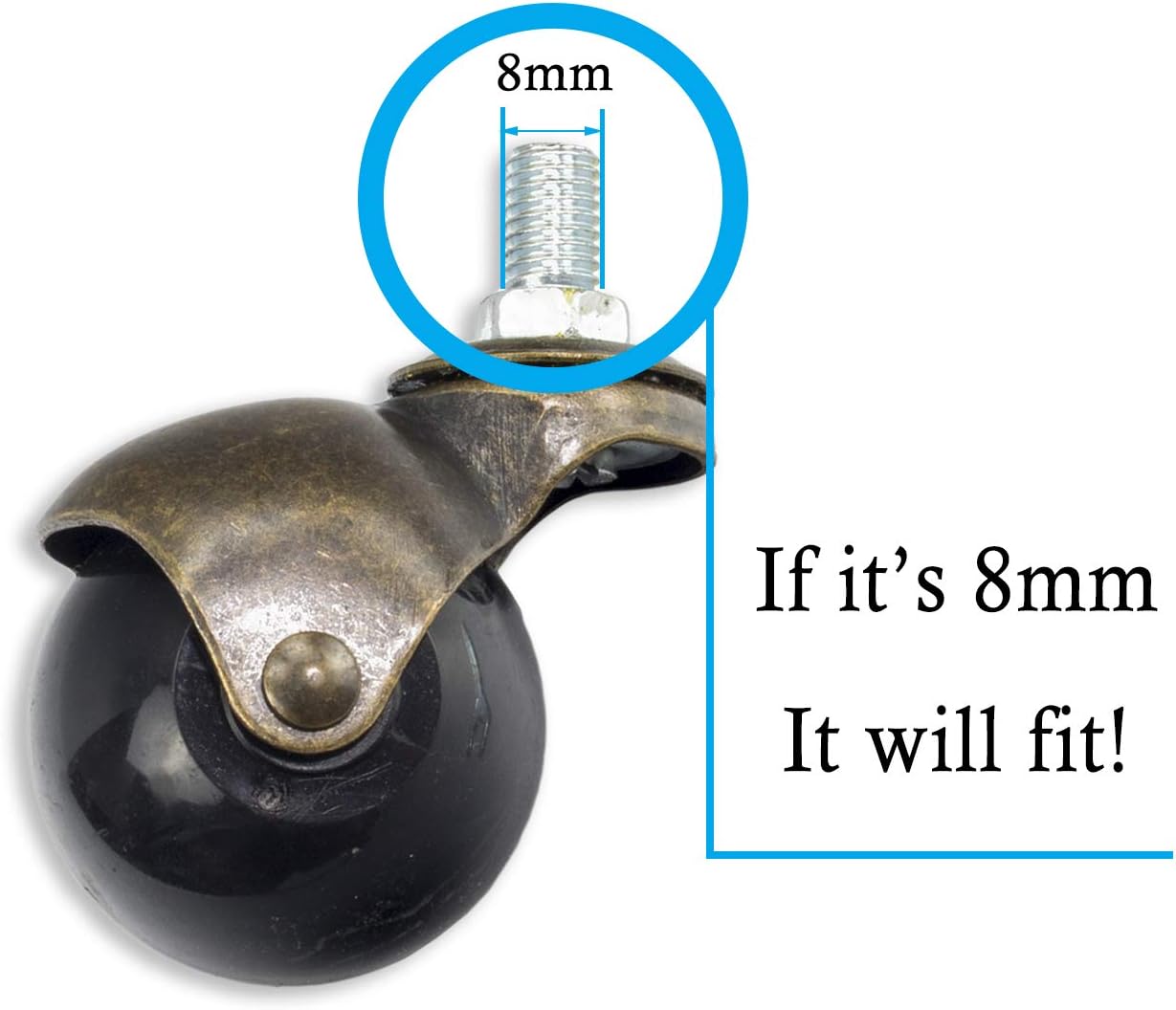 Set of 5 Vintage Bronze 2'' Ball Roller M8x15mm Screw Threaded Office Chair Wheel Casters Replacement Antique Retro Style Golden Copper Color