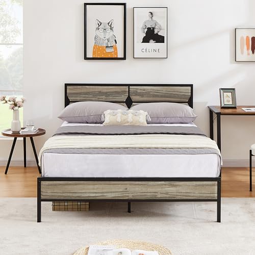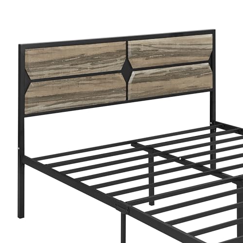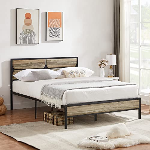 VECELO Queen Bed Frame Metal Platform with Wooden Headboard & Footboard Mattress Foundation Strong Metal Slats Support No Box Spring Replacement/Easy Assemble