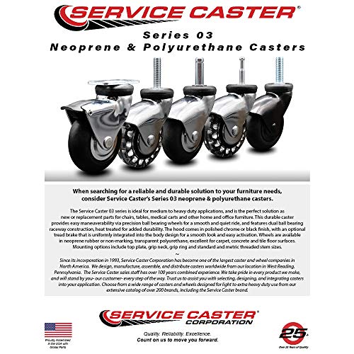 3 Inch Swivel Office Chair Caster Wheels for Furniture - Polyurethane Wheel with 7/16 Inch by 7/8 Inch Grip Ring Stem - Safe for Hardwood Floors & Carpet - 130 lbs. Per Caster - Service Caster Brand
