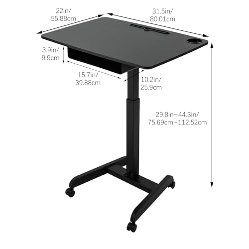 Height Adjustable Laptop Standing Desk Foot Pedal Rolling Desk, Mobile Podium Lectern for Home, Office& Classroom Adjustable Height: 29.8-44.3 in (Black)