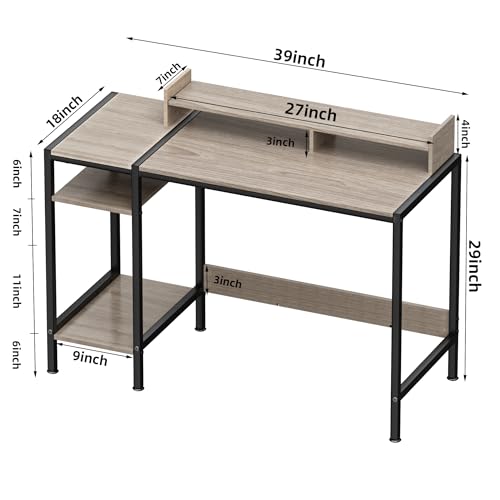 Small Computer Gaming Desk - 47” Home Office Desk with Storage, Monitor Stand for 2 Monitors, Adjustable Storage Space, Writing,Modern Design Corner Table, Beech.