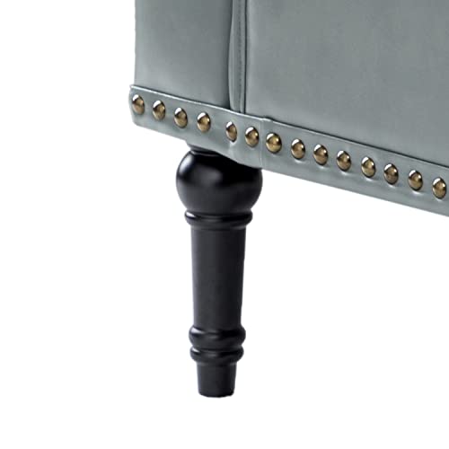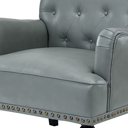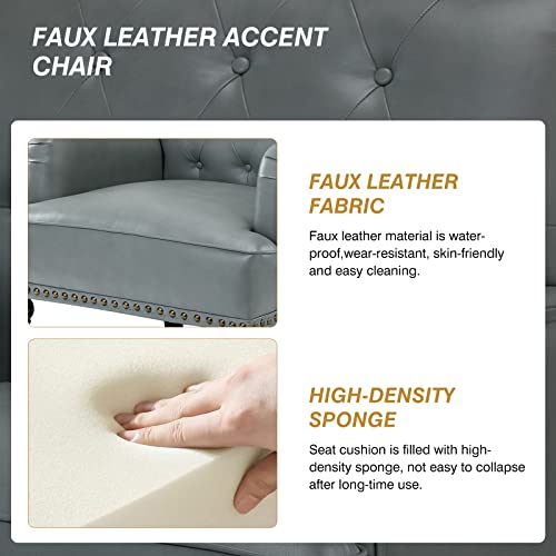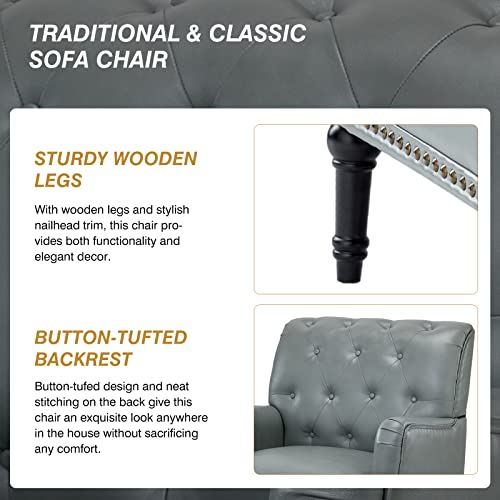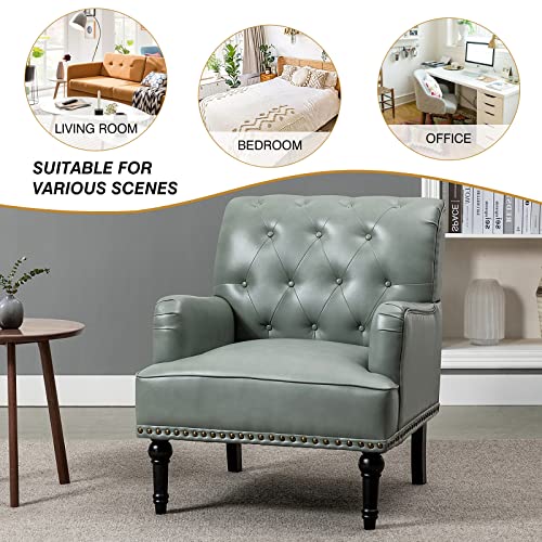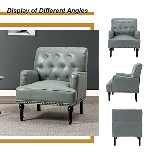 HULALA HOME Faux Leather Accent Chair with Button-Tufted Back, Comfy Upholstered Armchair with Nail Head Trim and Retro Wood Legs, Single Sofa Chair for Living Room Bedroom,SAGE