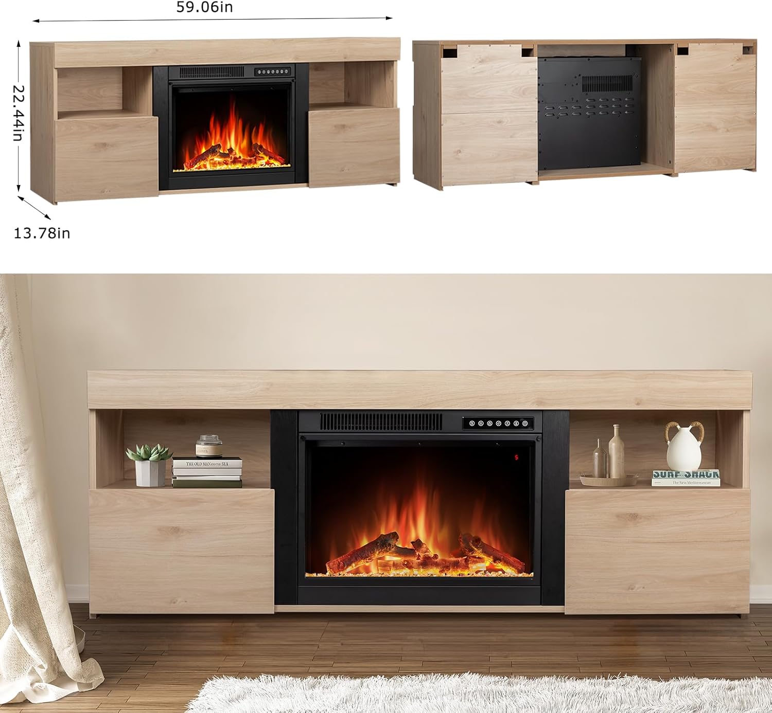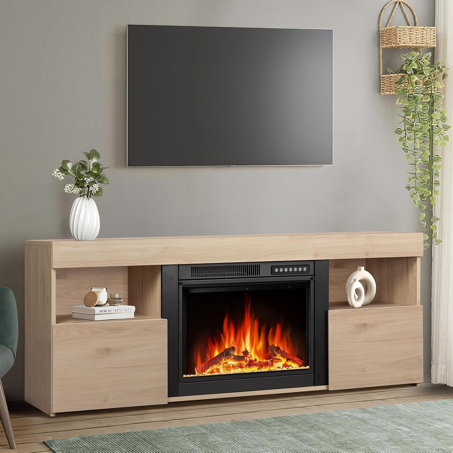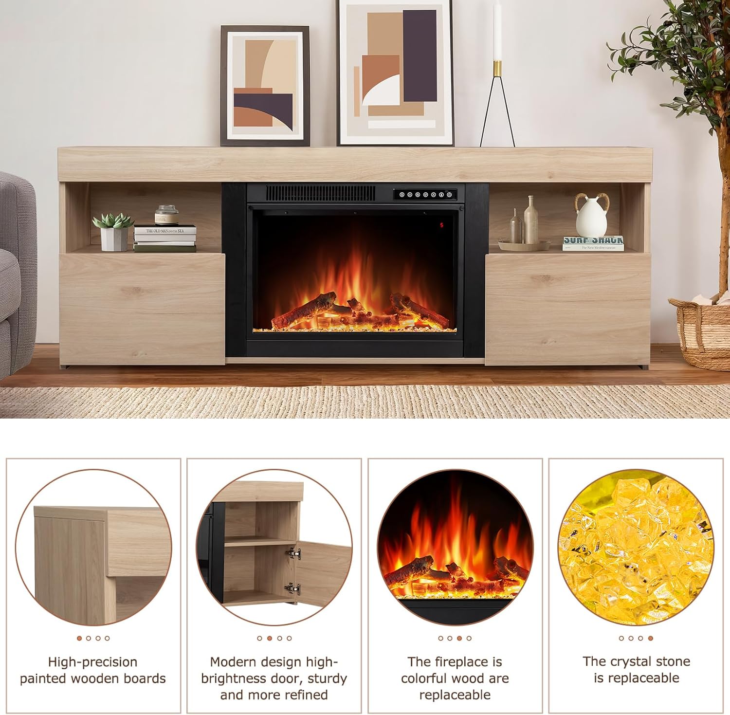 Xbeauty Fireplace Tv Stand for TVS up to 65 inchs,Modern Household TV Locker,Electric Fireplace TV Stand for Living Room,Pecan