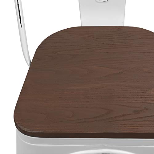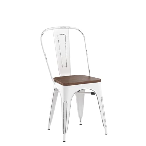 Furmax Metal Dining Chairs with Wood Seat, Indoor-Outdoor Use Stackable Chic Dining Bistro Cafe Side Metal Chairs Set of 4 (Black Gold)