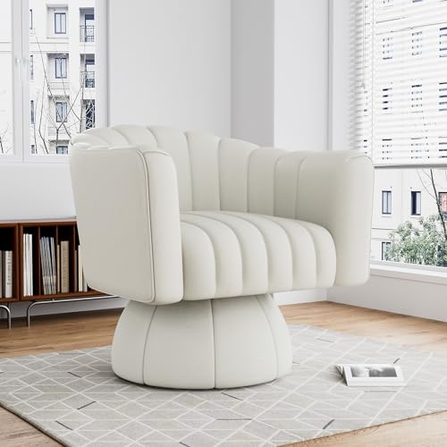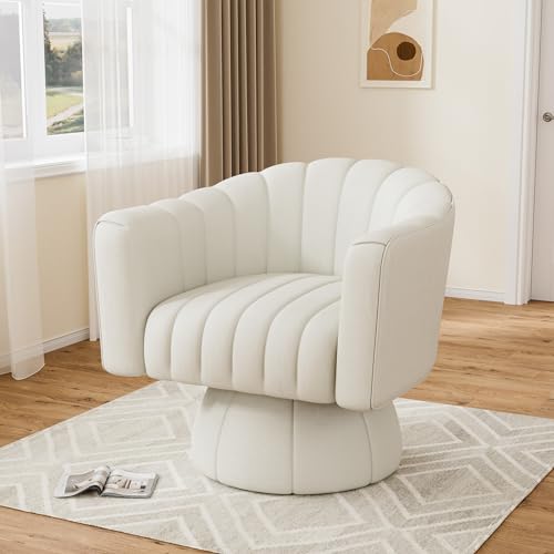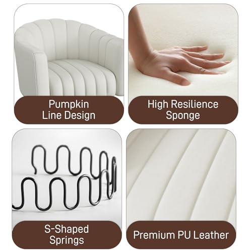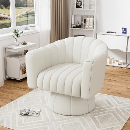 Swivel Barrel Accent Chair Set of 2, Modern Comfy Leather Armchair, 360 Degree Upholstered Round Reading Lounge Chair for Vanity Bedroom, Living Room, Office, Charcoal Black Leather