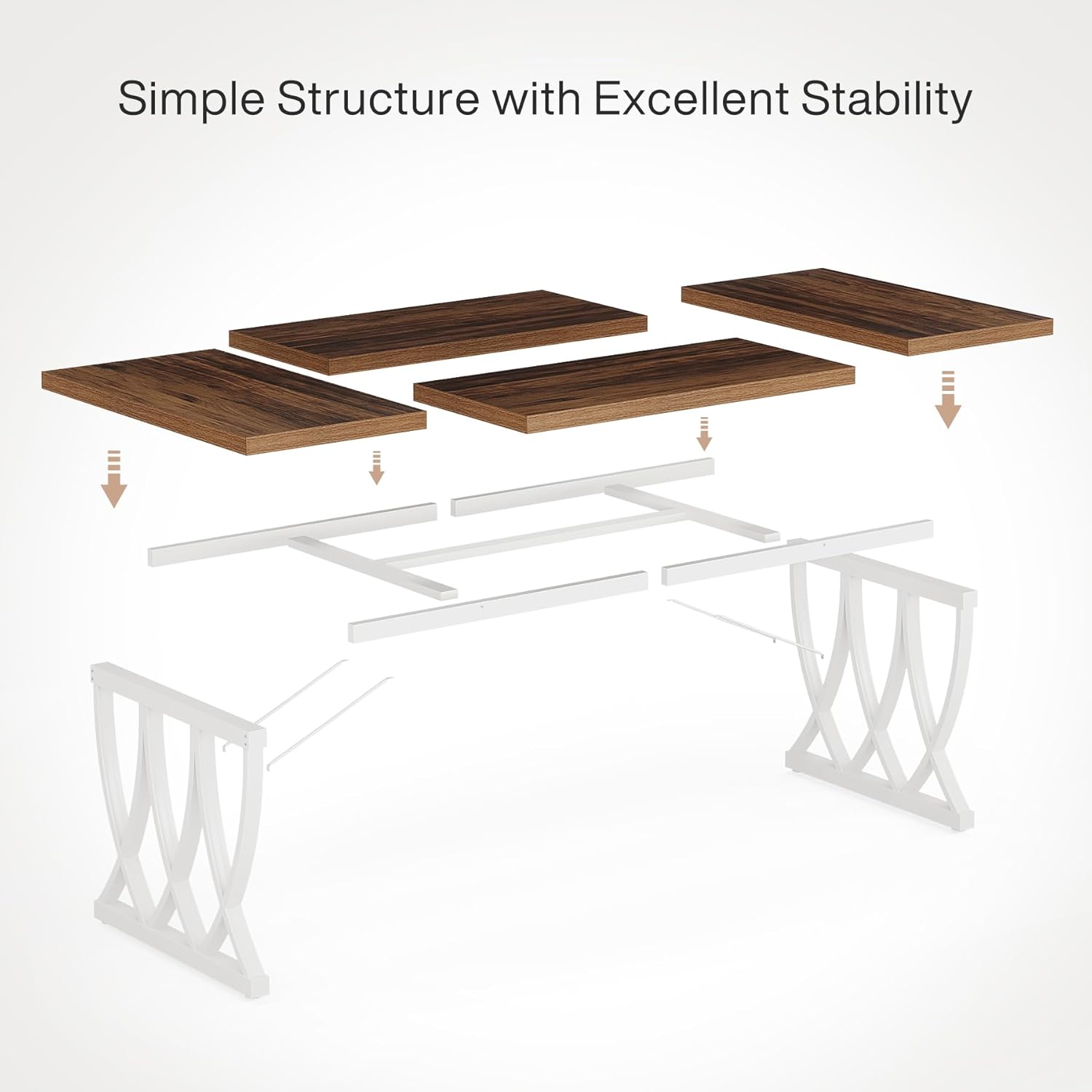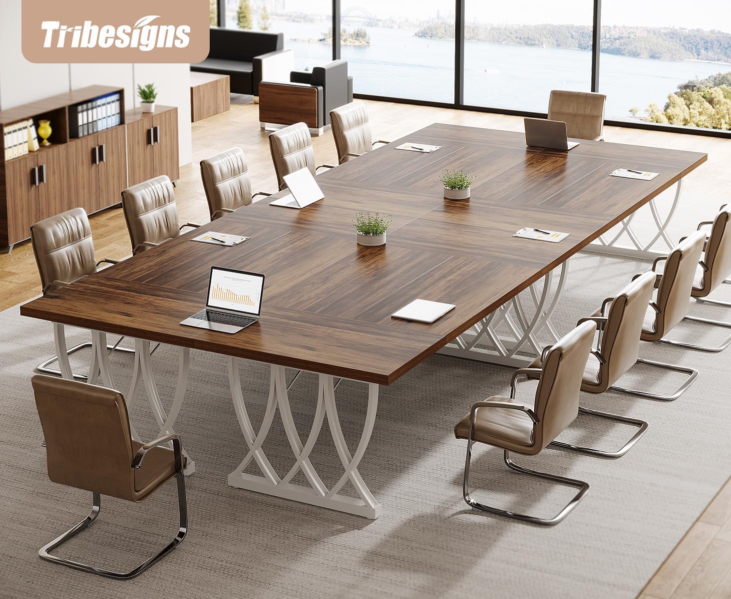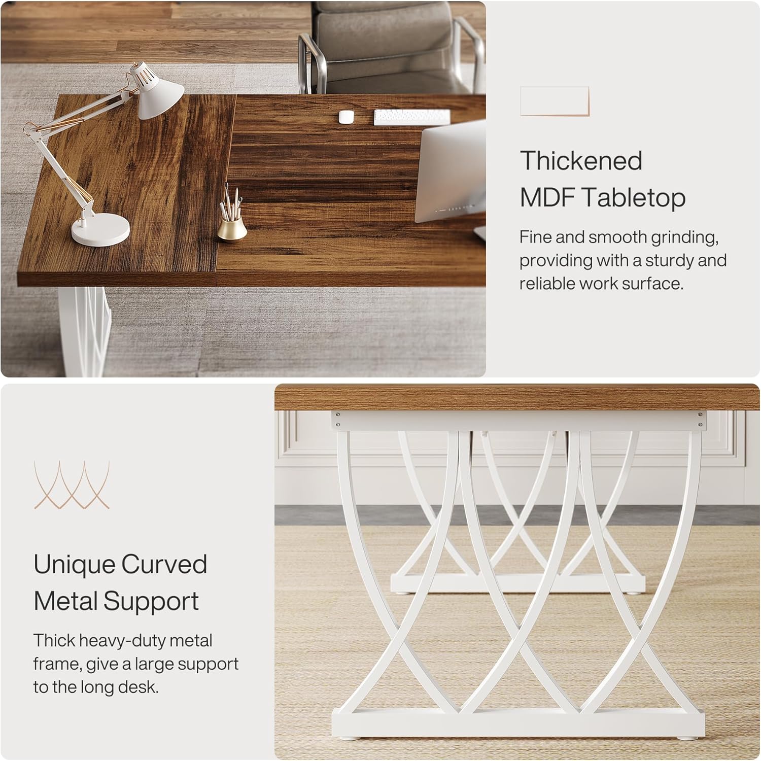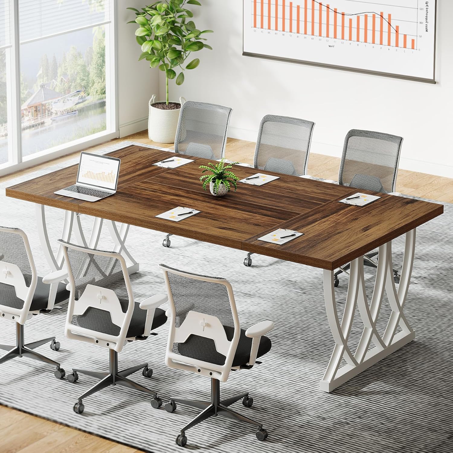 Tribesigns 6 ft Conference Table for 6-8 People, 70.86-Inch Rectangle Conference Table Meeting Seminar Table with Unique Curved Metal Support for Home Office (Retro Brown & White, Without Chair)