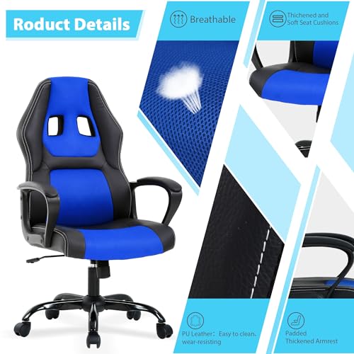 PC Gaming Chair Leather, Cheap Gamer Chair for Adults, Video Game Chairs with Lumbar Support, Desk Chair Gaming with Adjustable Height for Teens