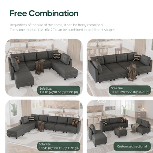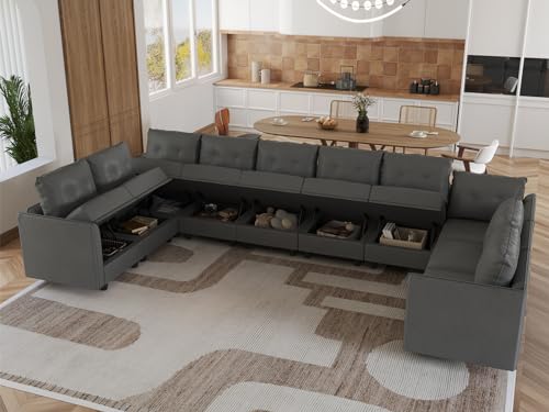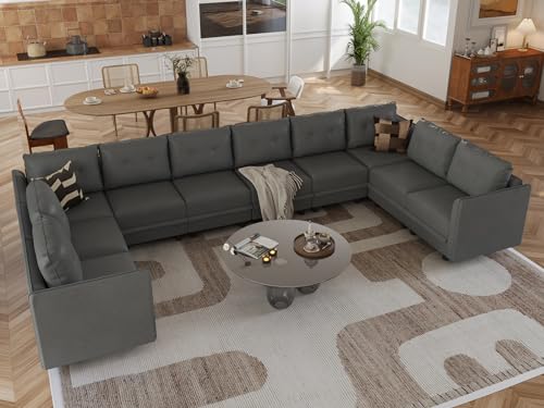 LLappuil Sectional Sofa Faux Leather Fabric Modular Couch with Reversible Chaise, Oversized U Shaped 10 Seater Sectional Set with Storage, Cognac