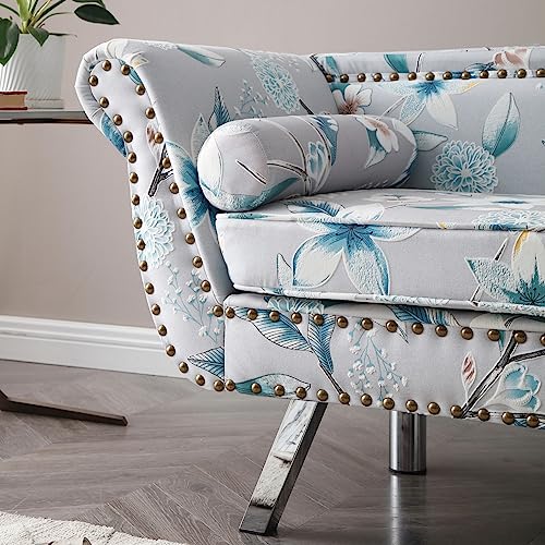 Modern Accent Velvet Loveseat, Upholstered Sofa for 2 Seater, Trimming Curved Backrest Rolled Arms Couch with Removable Cushion Silver Metal Legs for Living Room
