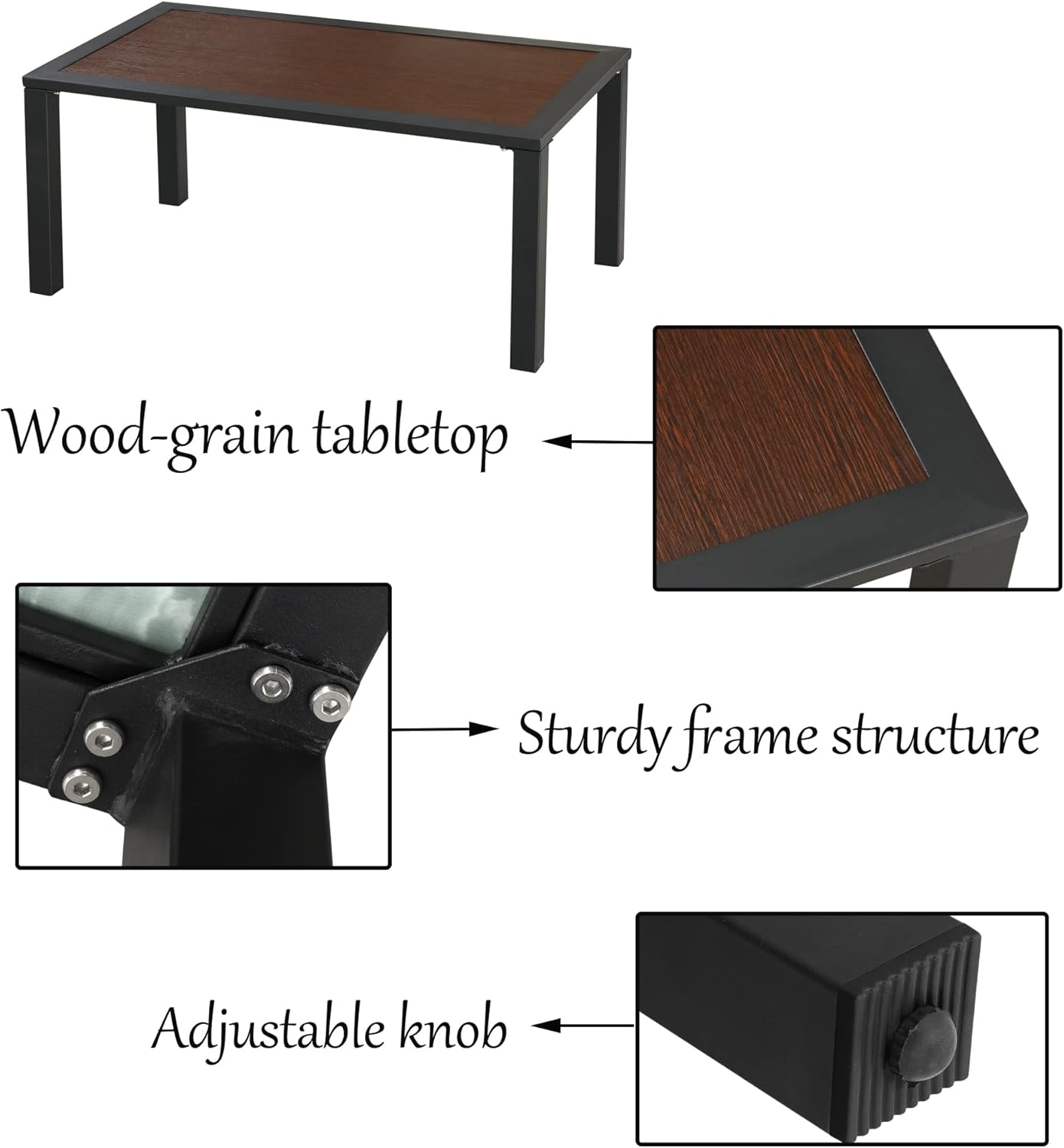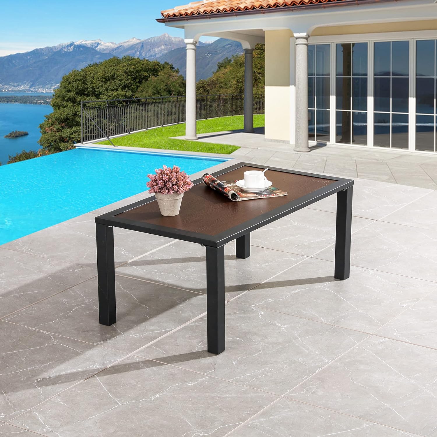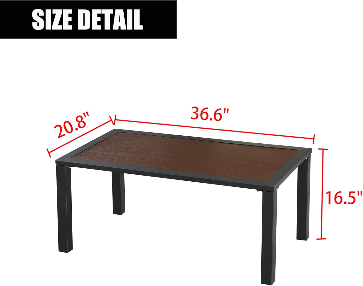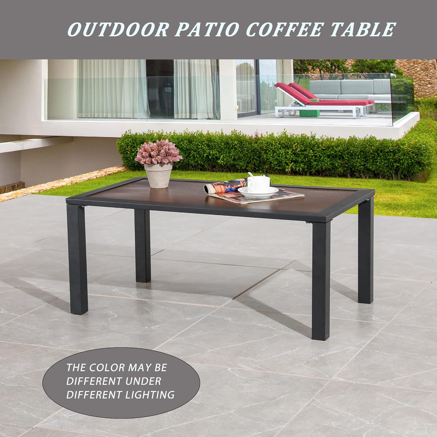 LOKATSE HOME Outdoor Patio Rectangle Coffee Table with Metal Frame All Weather, Brown