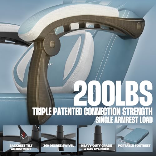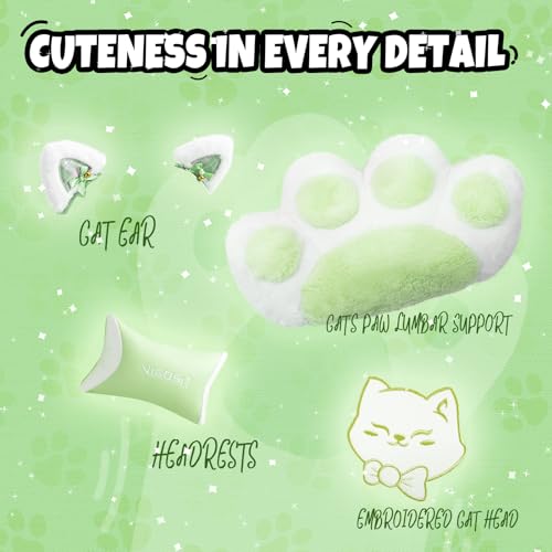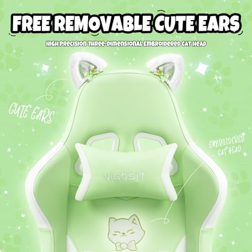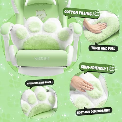 Cute Gaming Chair with Cat Paw Lumbar Cushion and Cat Ears, Ergonomic Computer Chair with Footrest, Reclining PC Game Chair for Girl, Teen, Blue