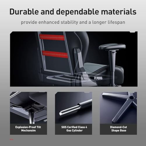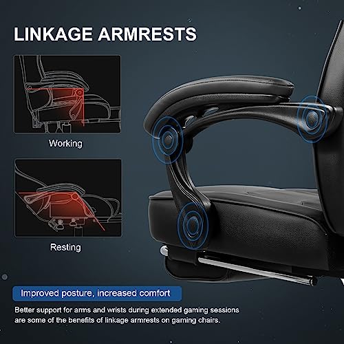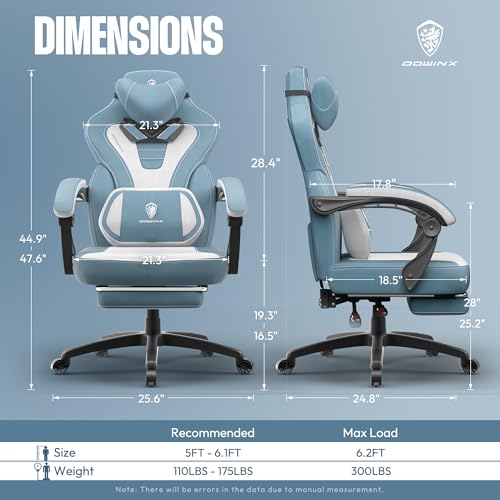 Dowinx Gaming Chair with Footrest, Big and Tall Gaming Chair for Heavy People, Computer/PC Gamer Chair for Adult with Massage (Black)
