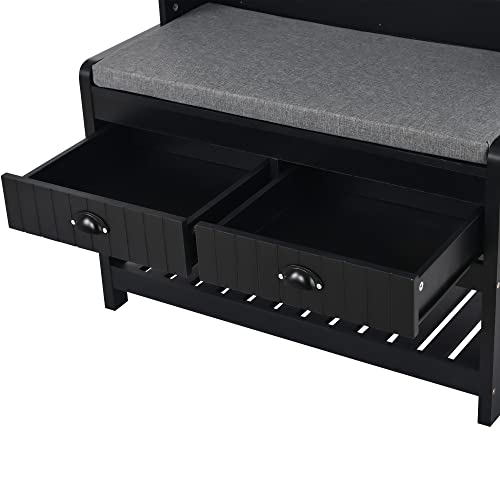 Shoe Rack Home Shoe Changing Stool Storage Bench 2-Tier Shoe Storage Organizer Shelf, with 2 Drawers &Mesh Shelf for Living Room, for Hallway, Entryway, Mudroom and Living Room Furniture,Antique Navy