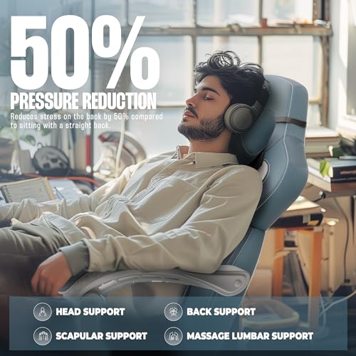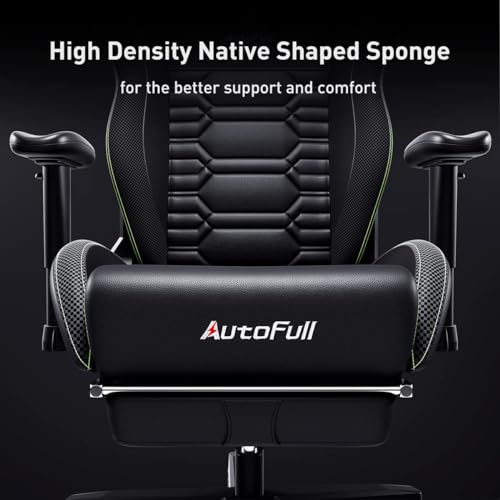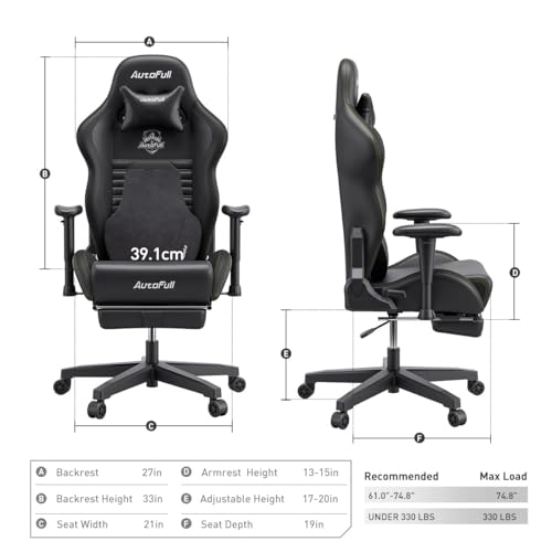 AutoFull Gaming Chair PC Chair with Ergonomics Lumbar Support, Racing Style PU Leather High Back Adjustable Swivel Task Chair with Footrest (Grey)