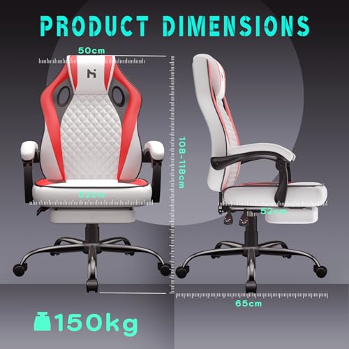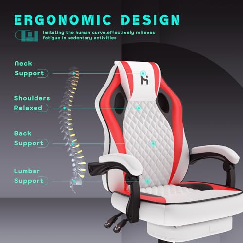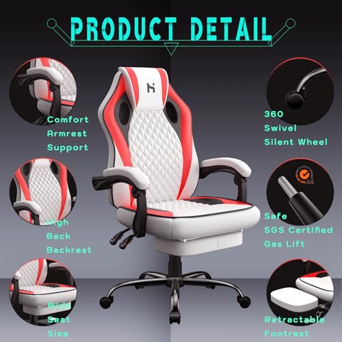 HLDIRECT Gaming Chair, PC Video Game Chair with PU Leather, Ergonomic Height & Angle Adjustable Gaming Chair with Footrest, 360°Swivel Computer Office Chair, Red
