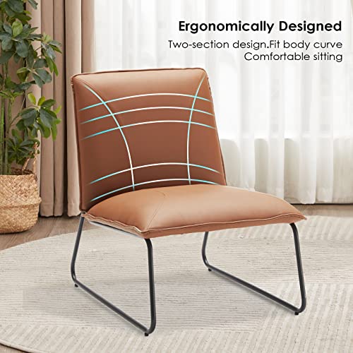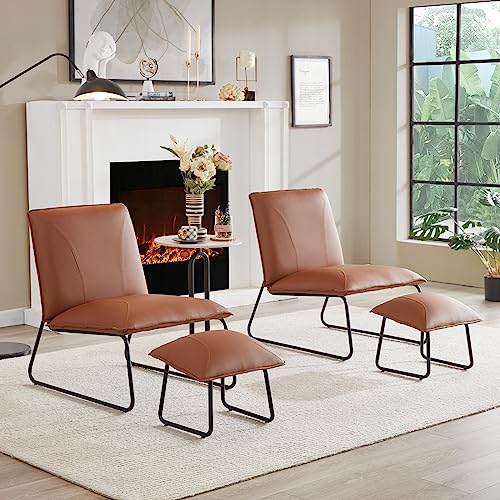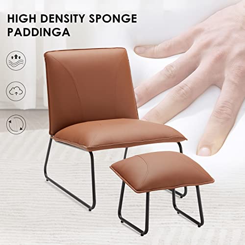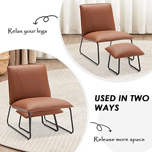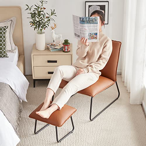 Modern Accent Chair, Living Room Chair with Footrest, Faux Leather Waterproof Fabric Armless Accent Chairs, 16″High Comfy Mid Century Modern Chair for Office Bedroom Chairs for Adults Lazy Corner