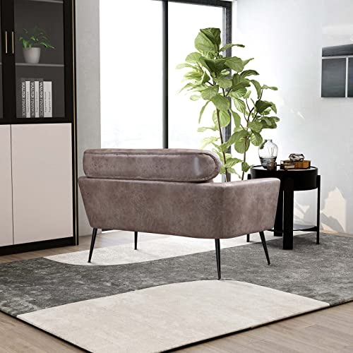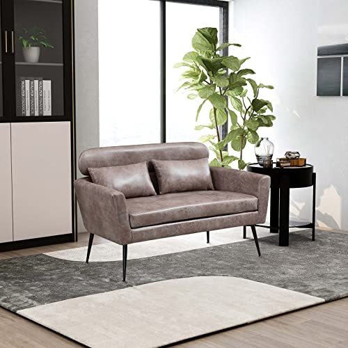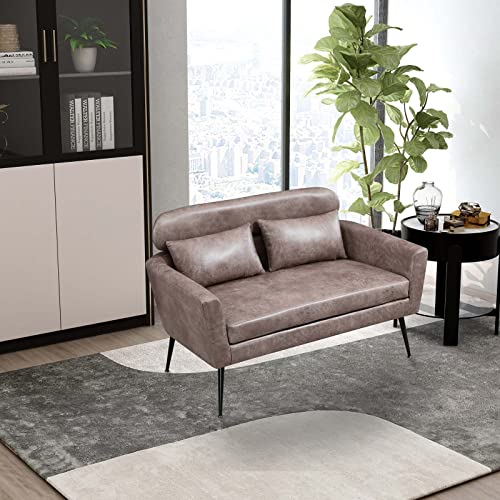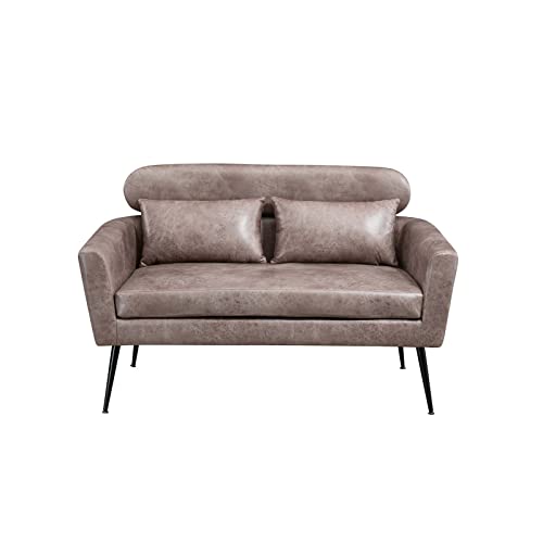51" Modern PU Loveseat Sofa Couch, Small Love Seat w/2 Throw Pillows and Metal Legs, 2-Seater Upholstered Leather Mini Sofa Couches for Small Space, Living Room Bedroom Apartments (Taupe)