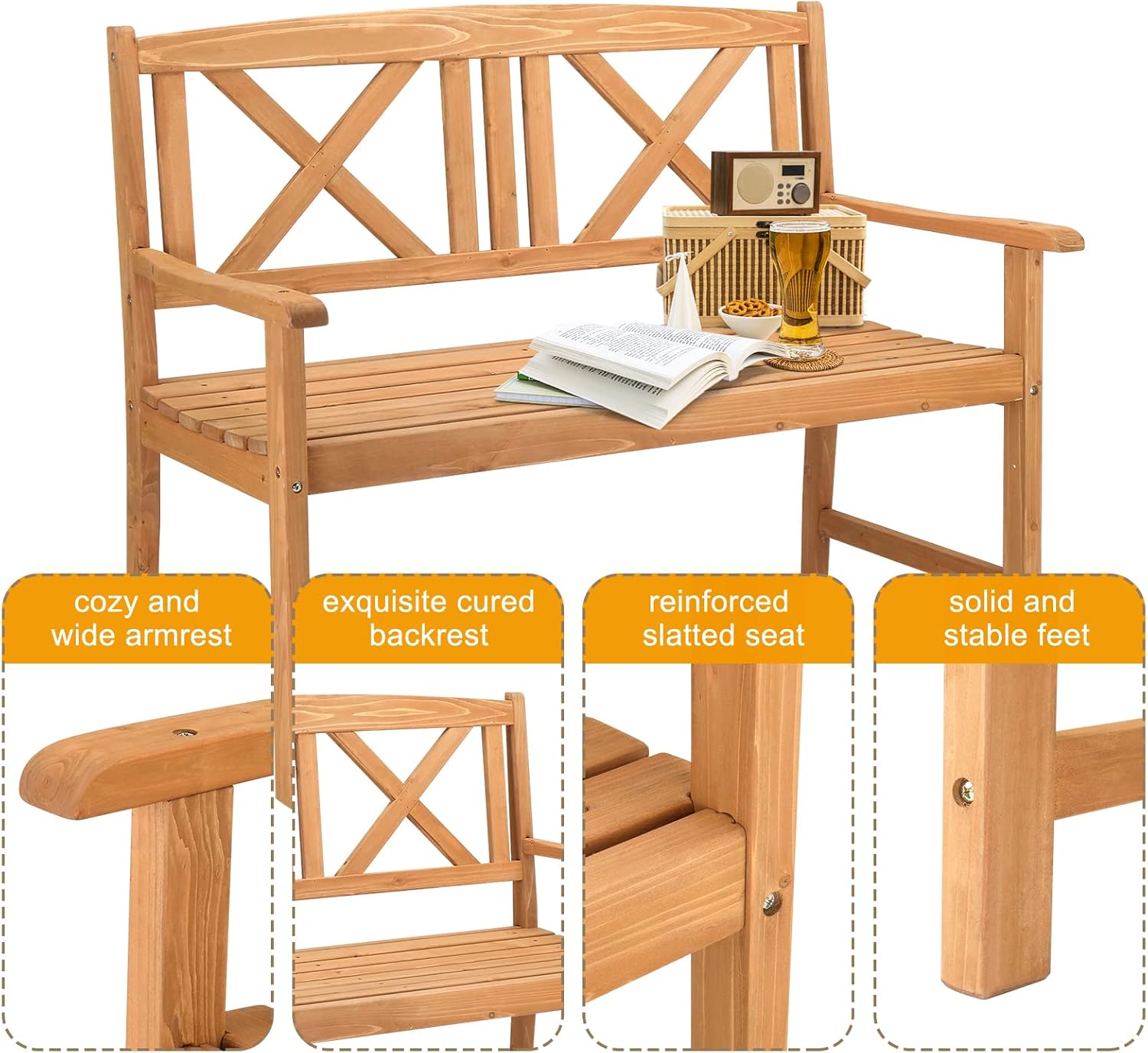 Wooden Park Front Porch Benches for Outside, Outdoor Wood Garden Bench, Patio Porch Chair Furniture,Outdoor Bench Garden Wooden Bench Seat Patio Bench for Backyard, Porch 117 x 61 x 90cm
