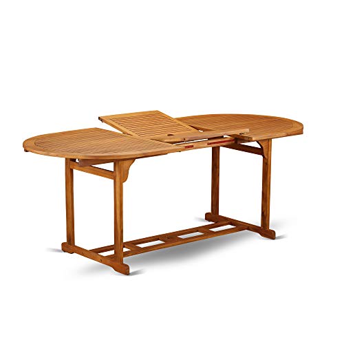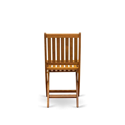 East West Furniture BSDK9CWNA 9-Piece Patio Set-8 Modern Chairs Slatted Back and Outdoor Coffee Table and Round Top with Wood 4 Legs-Natural Oil Finish