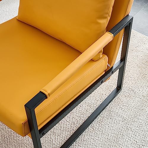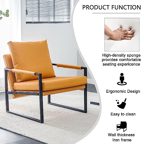 Mordern PU Leather Accent Chair Mid Century Modern Upholstered Armchair with Metal Frame Extra-Thick Padded Backrest and Seat Cushion for Living Room Bedroom Office (Orange)