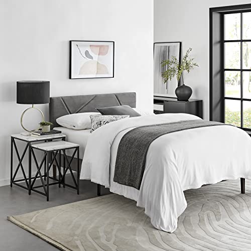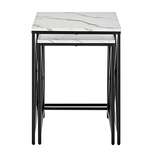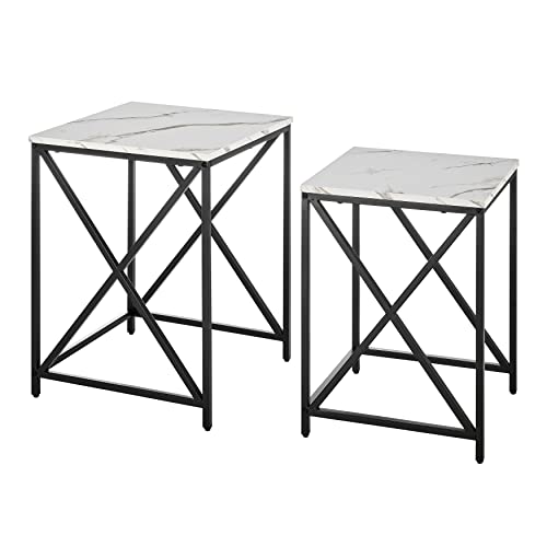 Modern Square Marble Finish Veneer Top Black Metal Frame Nesting End Tables - White or Black Marble Set of 2 (White Marble)