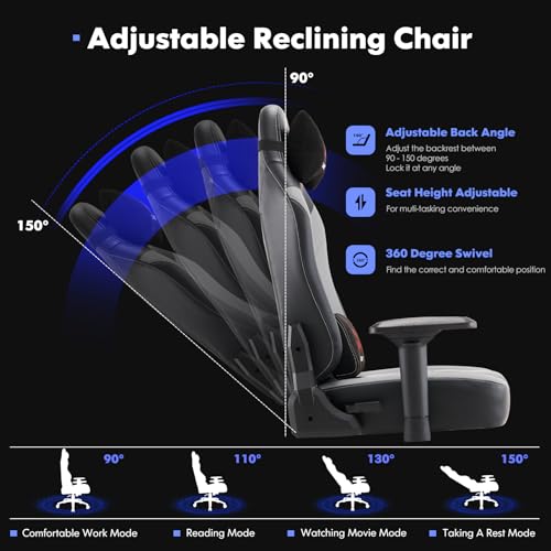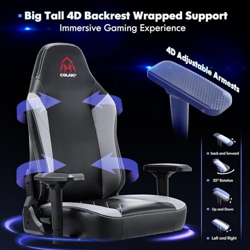 COLAMY Big and Tall Gaming Chair 400lbs, Ergonomic Computer Gamer Chair, Heavy Duty PC Gaming Chair with Wide Seat, Adjustable 4D Armrest for Large Adults-New Black