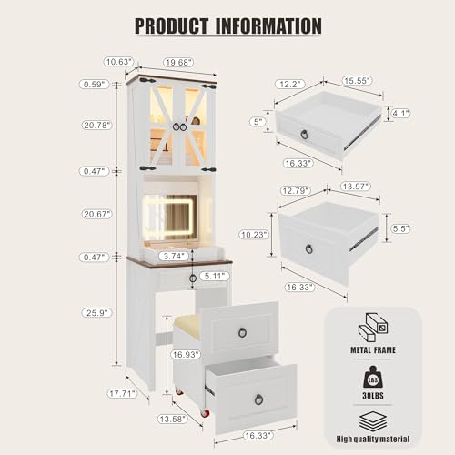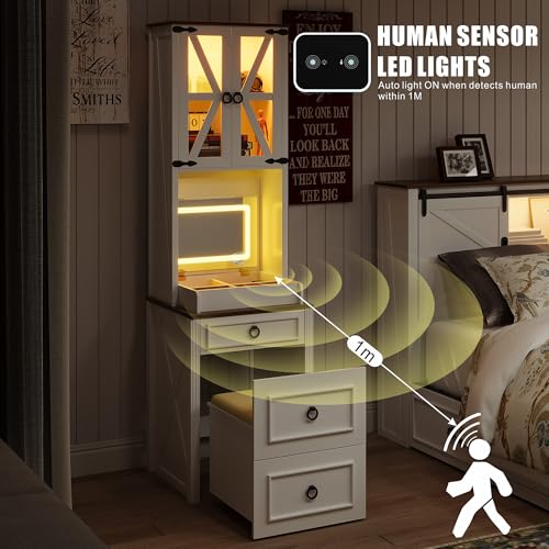 Vanity Desk with Mirror,Small Makeup Vanity Set with Customizable Lighting,Compact Makeup Vanity Desk with Hidden Storage and Comfortable Stool,Dressing Table for Bedroom,Brown