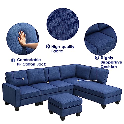 LUMISOL 104.3" Modern L-Shaped Sectional Sofa with Chaise and Removable Ottoman, U Shape 7 Seat Upholstered Modular Sofa for Living Room, Linen Fabric