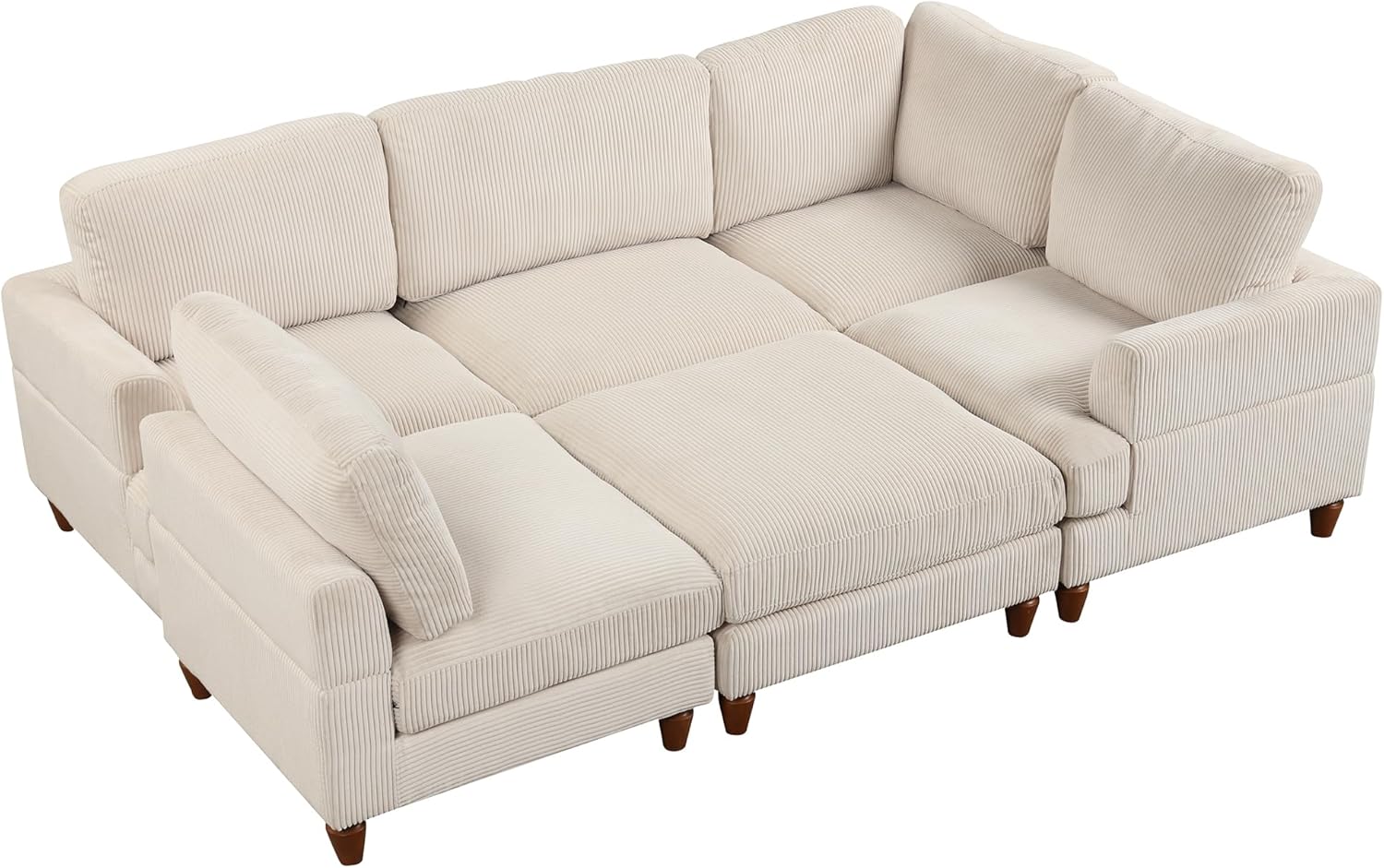 101.2”x 101.2”Modular Sectional Sofa Living Room Sofa Set Convertible L-Shape with Ottomans Reversible Oversized Sectional Sofa Modern Minimalist Style Couch with Chaise Beige