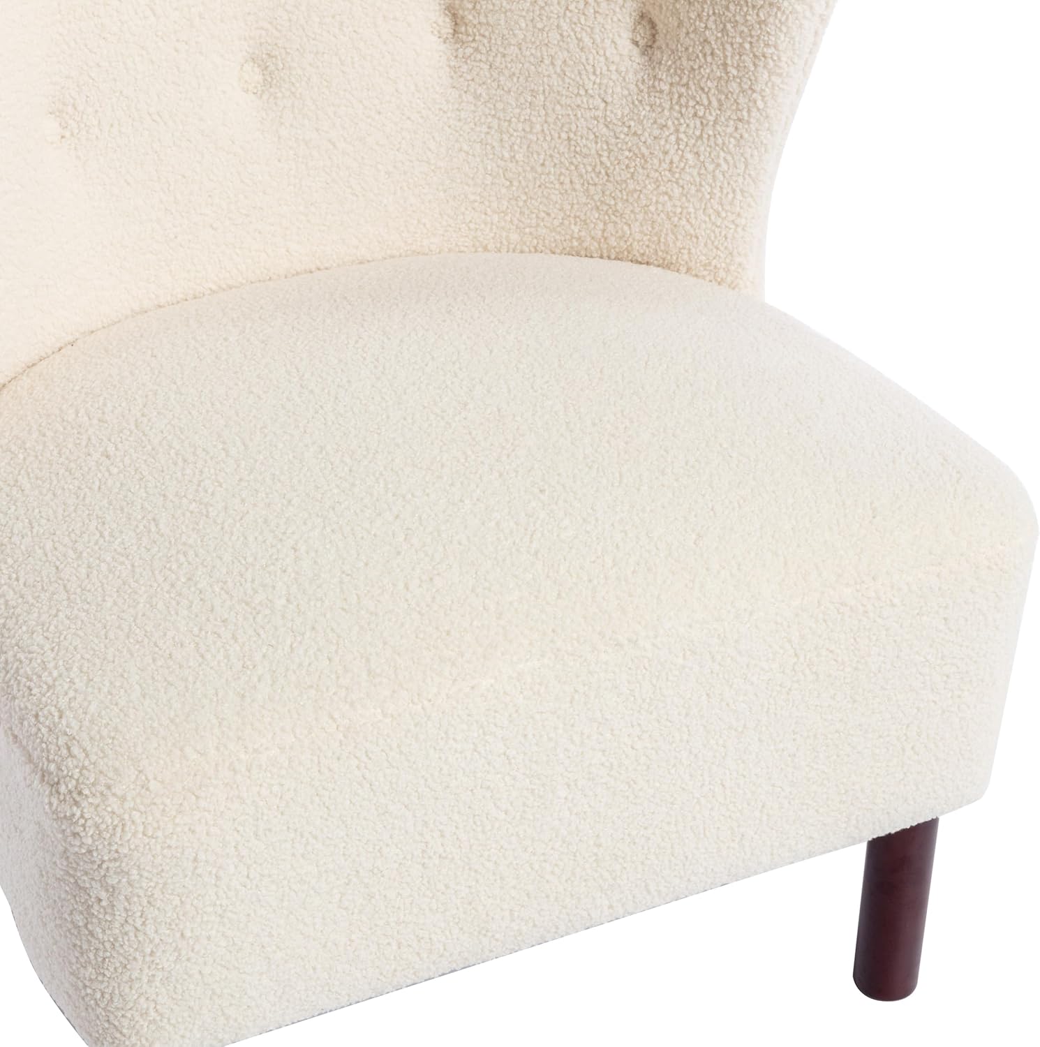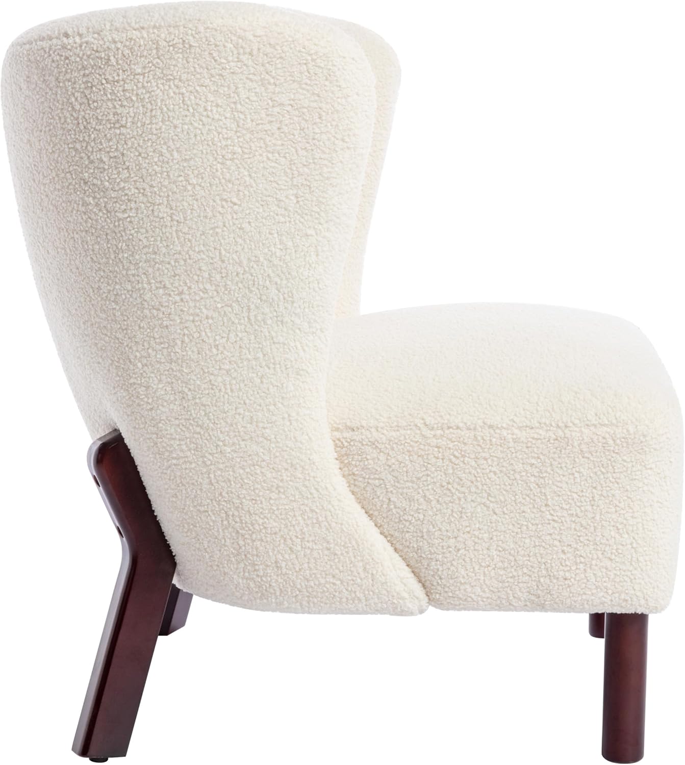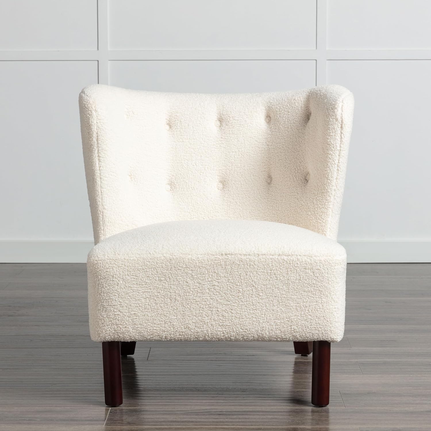 Accent Chair, Upholstered Armless Chair Lambskin Sherpa Single Sofa Chair with Wooden Legs, Modern Reading Chair for Living Room Bedroom Small Spaces Apartment, Cream