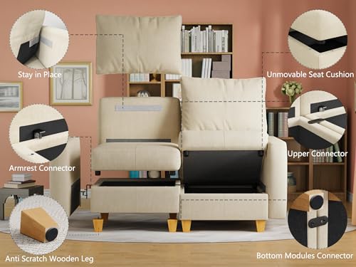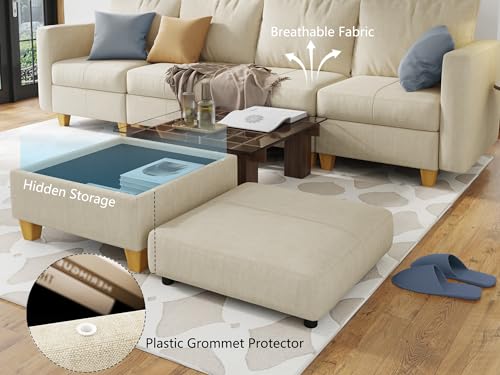 Modular Sectional Sofa Ottoman with Storage, Linen Multipurpose Footrest for Customizable Sectional Modular Couch Blue