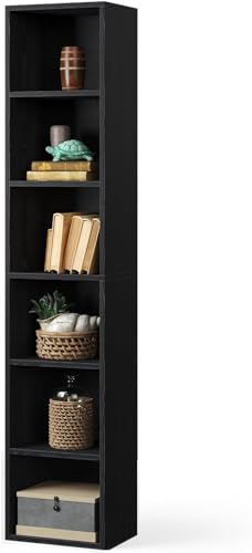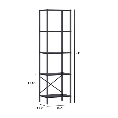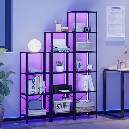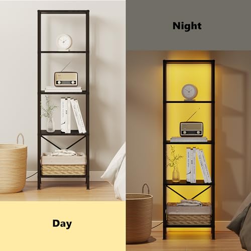 5-Tier Bookshelf, Tall Narrow Bookcase with LED Lights, Book Shelf with Steel Frame, Display Storage Shelf for Living Room, Bedroom, Home Office, Study, Balcony, Black