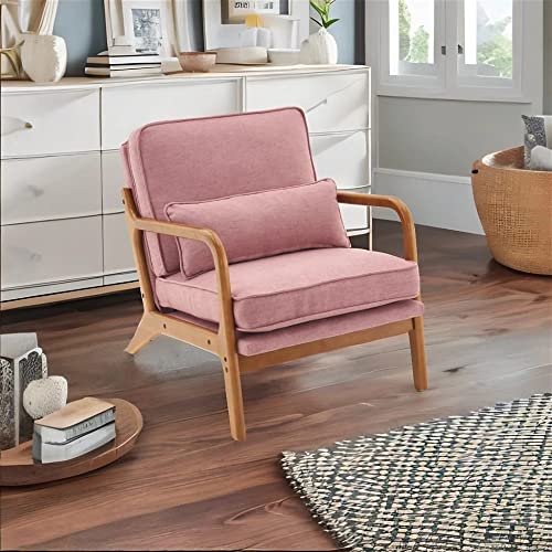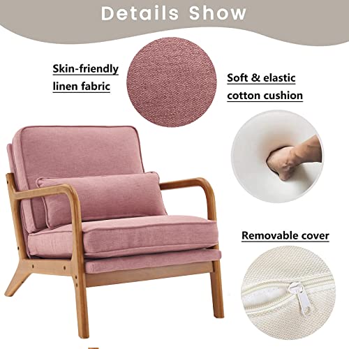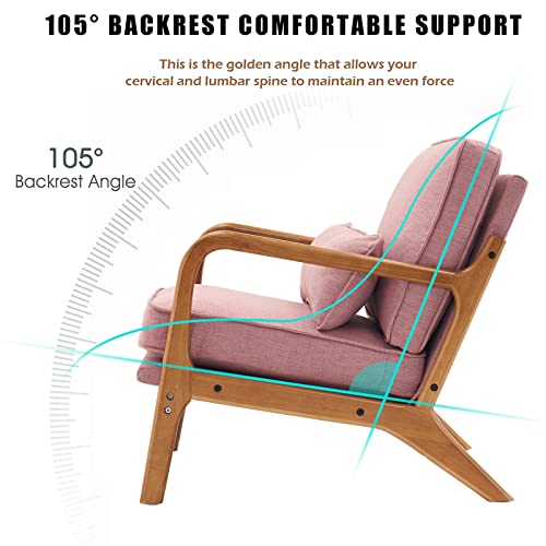 Accent Chair for Living Room, Mid-Century Modern Upholstered Armchair with Pillow,Reading Arm Chair,Comfy Accent Chair for Bedroom