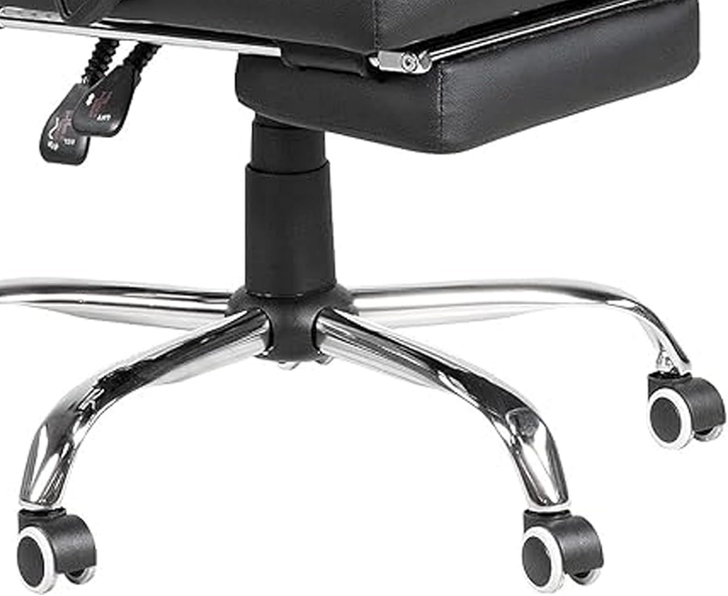 Benjara Elin 46 Inch Office Chair Recliner, Footrest, Faux Leather, Wheels, Black and Chrome