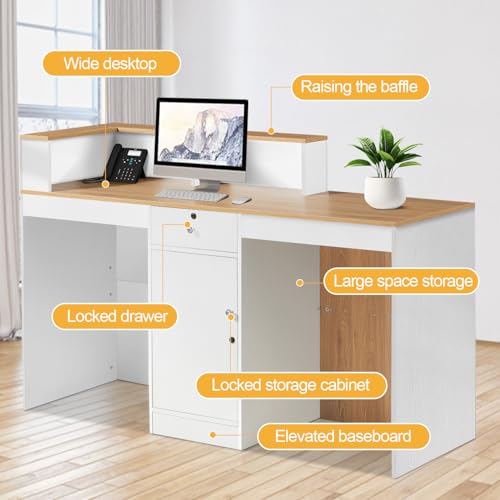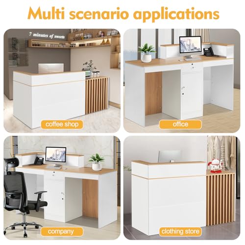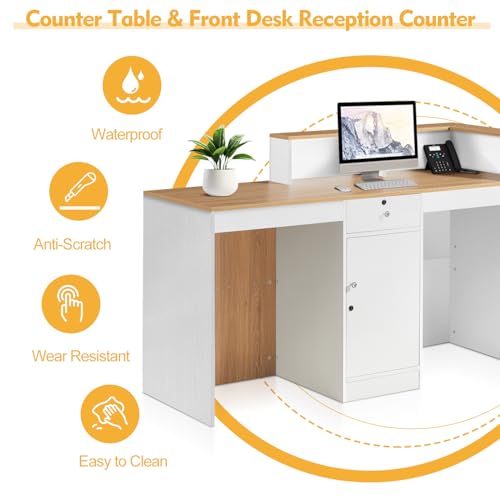 Reception Desk with Counter,Front Desk checkout counter with Lockable Drawer & Door Cabinet,Front Counter Desk Reception Retail Counter Table for Salon Lobby Shop Reception Room Checkout Office(100cm)
