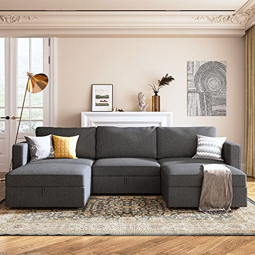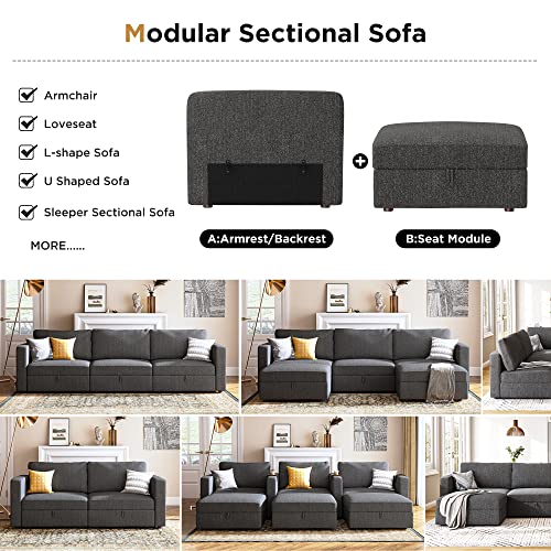 HONBAY Middle Seat Module Storage Ottoman Module for Oversized Modular Sectional Sofa Customizable Modular Couch, Middle Seat/Ottoman Module, Dark Grey