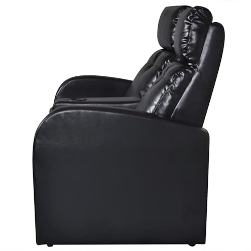 2-Seater Home Theater Recliner Sofa Black Faux Leather,Modern Reclining Armchair with Builtin Cup Holder for Living Room and Office Living Room Furniture