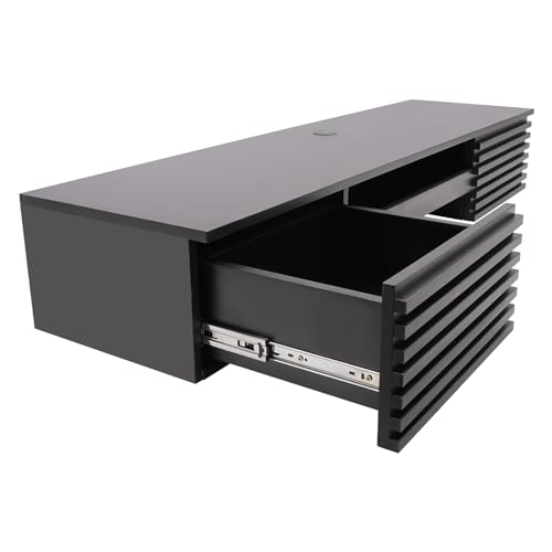 Wall Mounted Desk 60 * 15-Inches Floating Shelf with Pull Out Drawer Wall Organizer nder Storage Workstation White Wall Desk Hanging Desk for Bedroom Living Room Study Office (Black)
