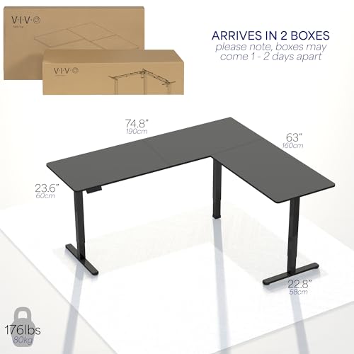 VIVO Electric Height Adjustable 84 x 63 inch Corner Stand Up Desk, White Table Top, White Frame, L-Shaped Standing Workstation, 3CT Series, DESK-E3CTWW-84
