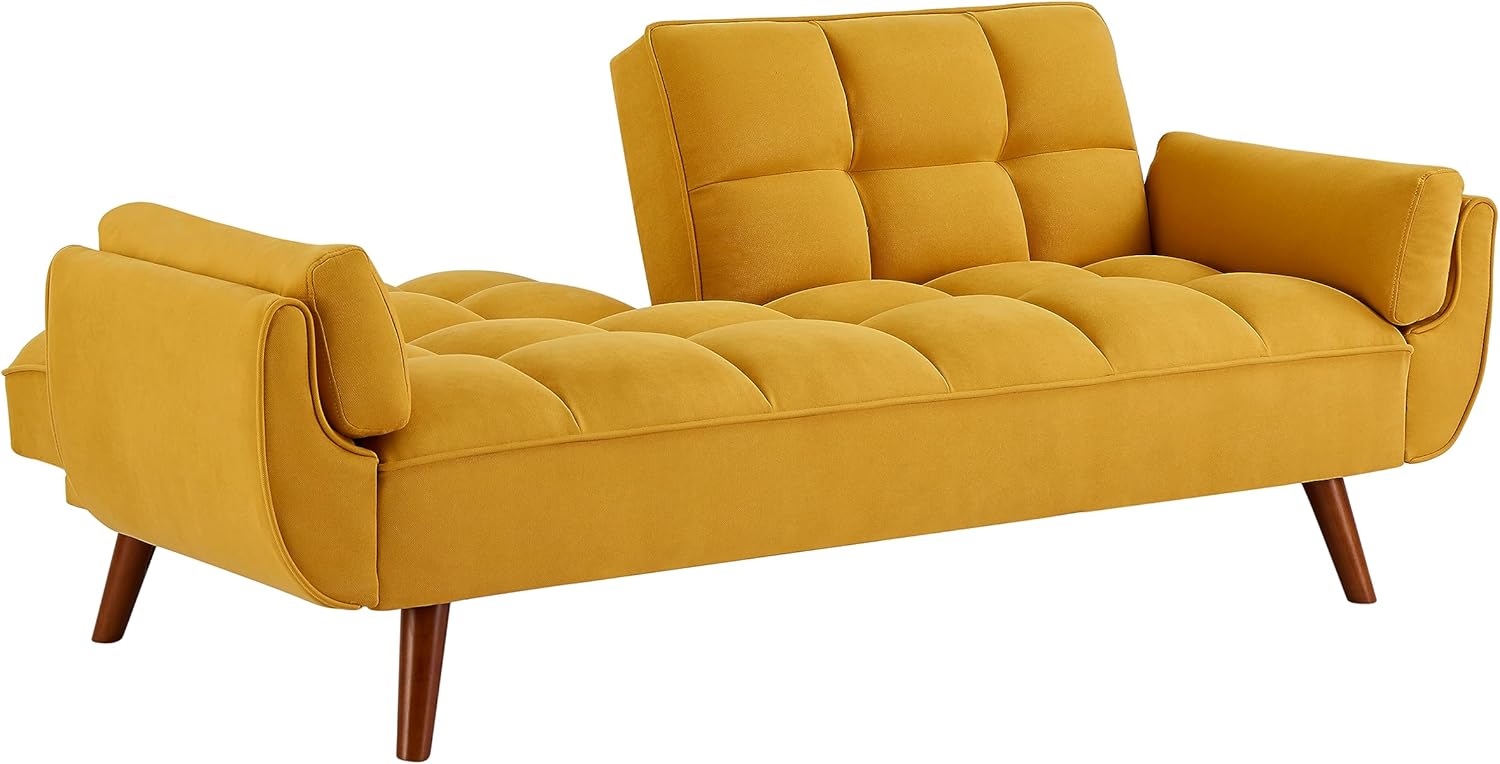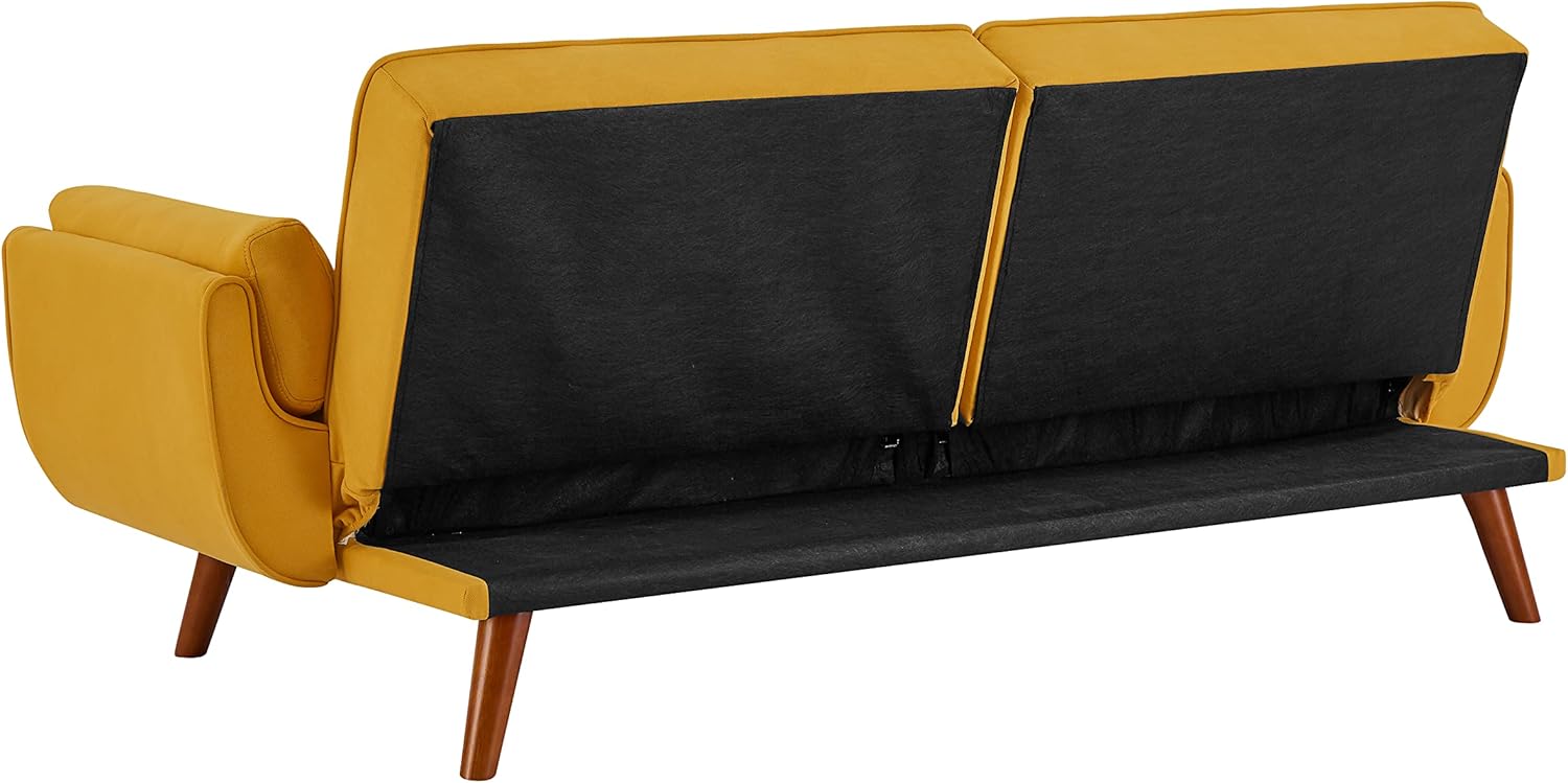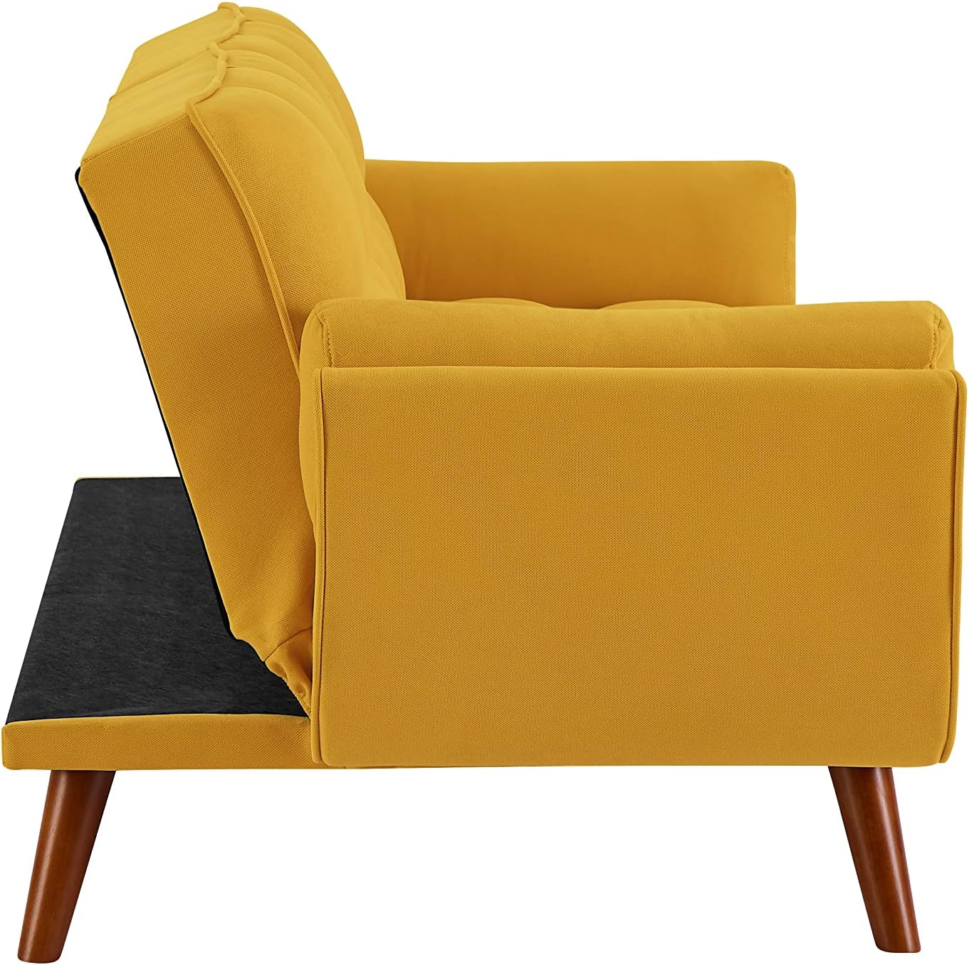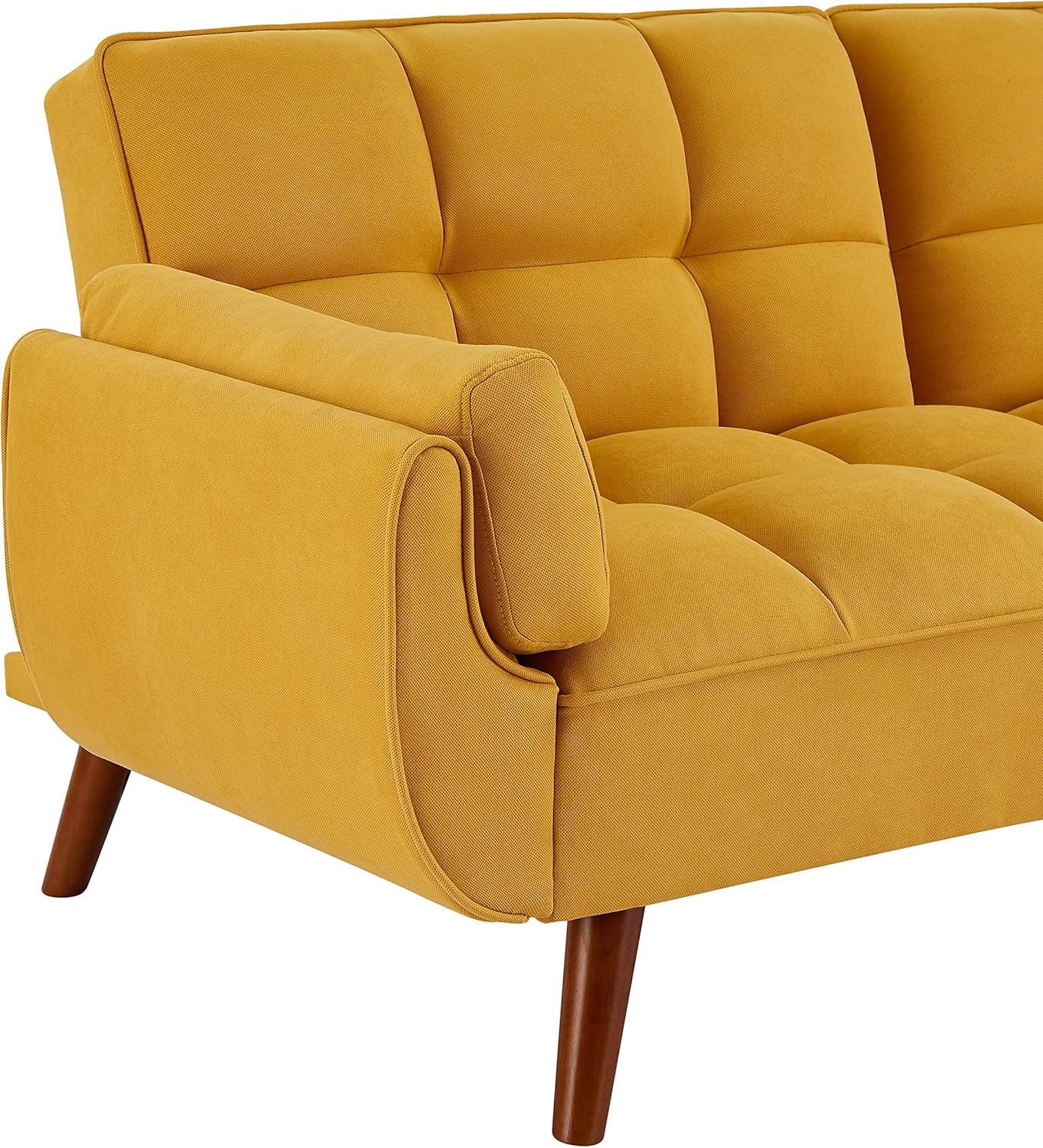 Linen Upholstered Sleeper Futon Sofa Bed, Convertible Folding Loveseat RV Couch, Versatile 2 Seater Love Seat Sofabed Sofacama with Wooden Legs for Living Room, Apartment, Office,Small Places