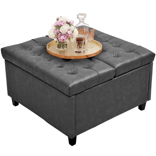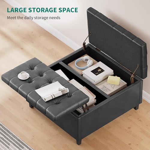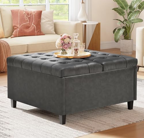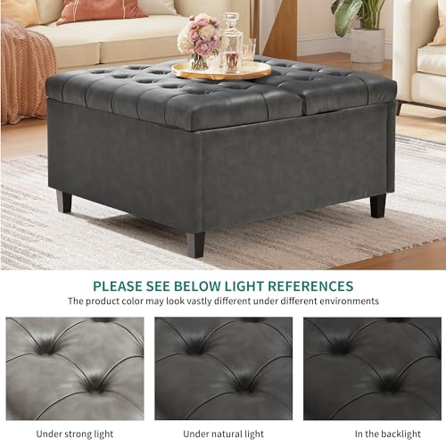 YITAHOME Storage Ottoman Coffee Table, Lift Top Square Ottoman with Storage Tufted Upholstered for Living Room, Bedroom, Office, Dark Grey