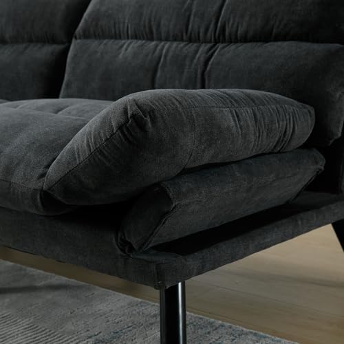 Convertible Futon Sofa Bed Couch,Morden Loveseat Sleeper Sofa Bed, Comfy Futon Couch Bed with Adjustable Backrests&Folding Armrests for Bedroom,Living room,2 Seats,Heavy Duty,Fabric (Dark Grey)