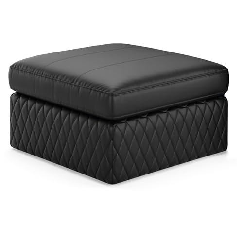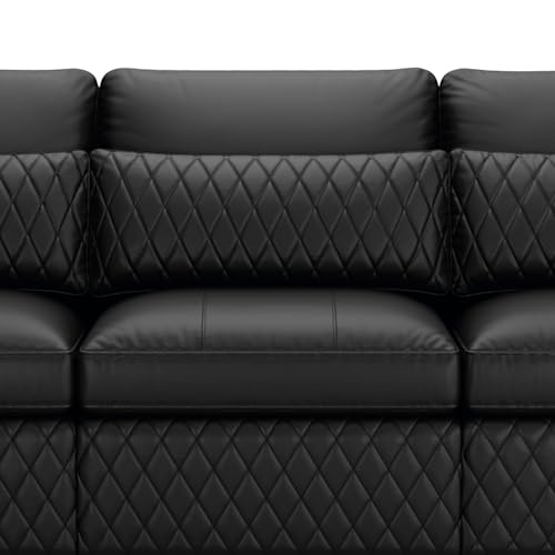 Seatcraft Diamante Stationary Row of 4 Middle Loveseat Sofa, Grade 7000 Leather, Living Room, Down Feather Lining, Strong Engineered Reinforced Wood Frame, Black