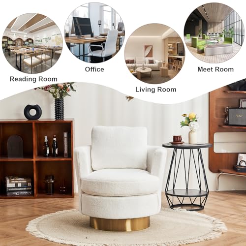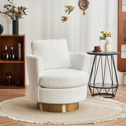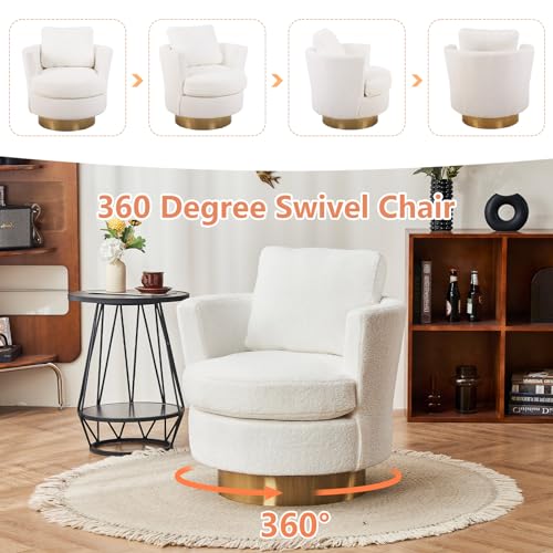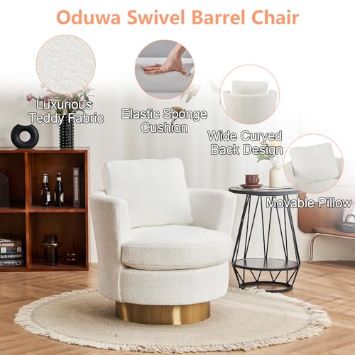 ODUWA Swivel Barrel Chairs,Modern Round Teddy Sherpa Arm Chair with Gold Stainless Steel Base,Upholstered Comfy 360 Degree Swivel Accent Chair for Living Room Bedroom Nursery