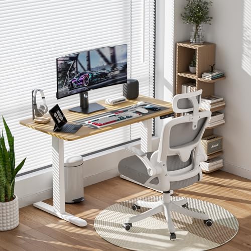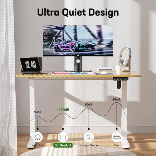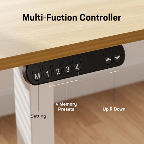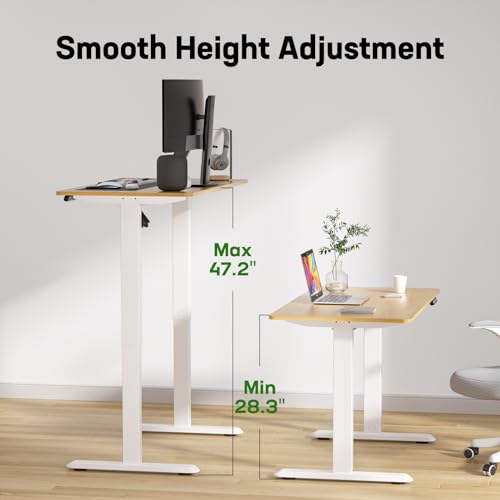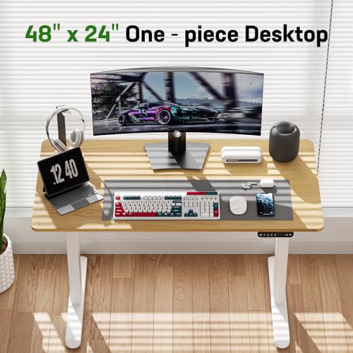 Electric Standing Desk, 48 x 24 Inch Adjustable Height Desk with Whole-Piece Desktop, Black Sit Stand Up Desk, Home Office Desk with 4 Memory Presets (Brown Top)