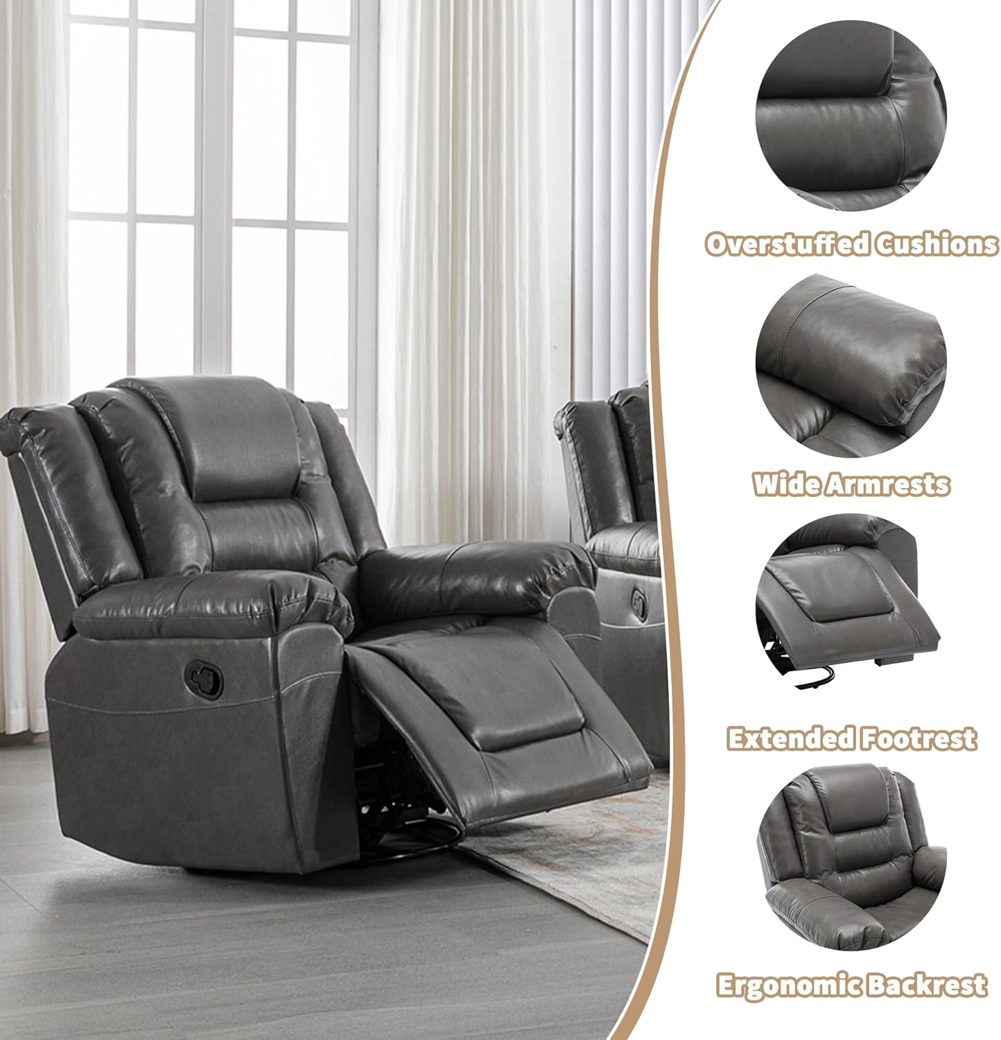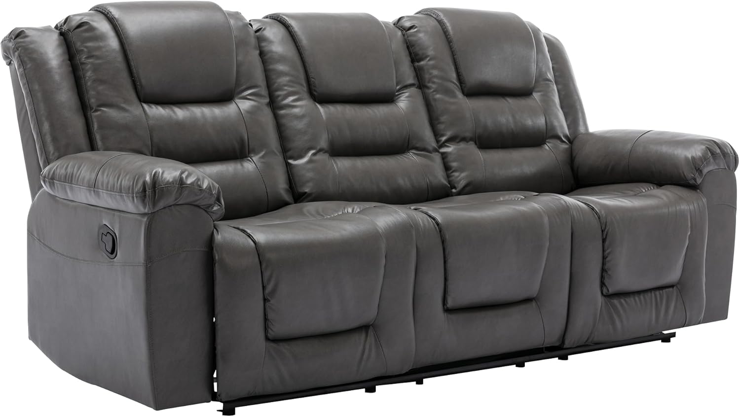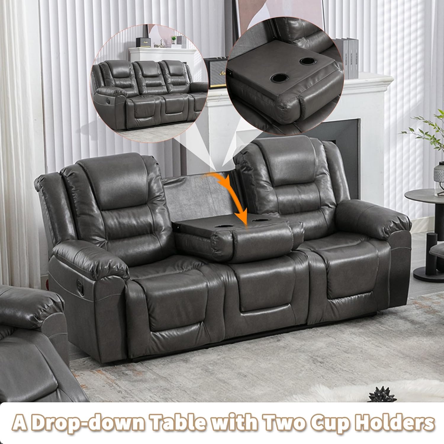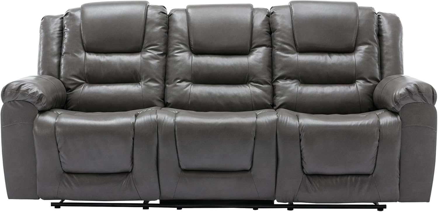 3 Seater Home Theater Recliner Manual Recliner Chair with Two Built-in Cup Holders for Living Room,Bedroom, Grey