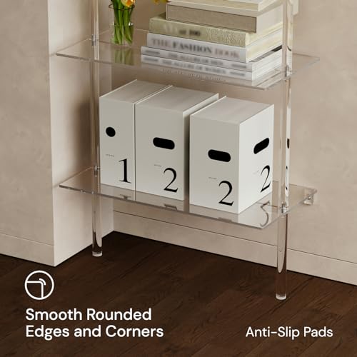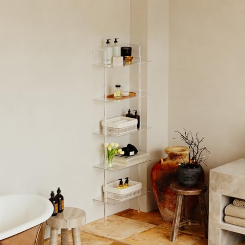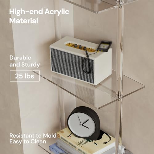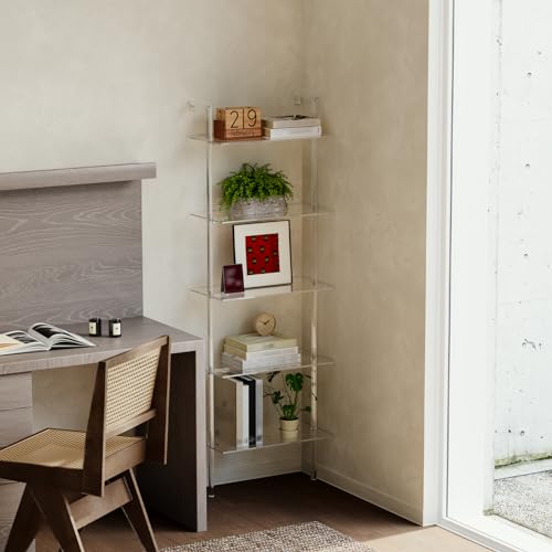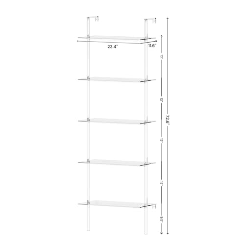 Acrylic Ladder Bookshelf, 5-Tier Clear Wall Mounted Bookshelf with Open Shelves, Multipurpose Bookcase for Living Room, Bathroom, Office, Modern, 11.6" D x 23.4" W x 72.6" H