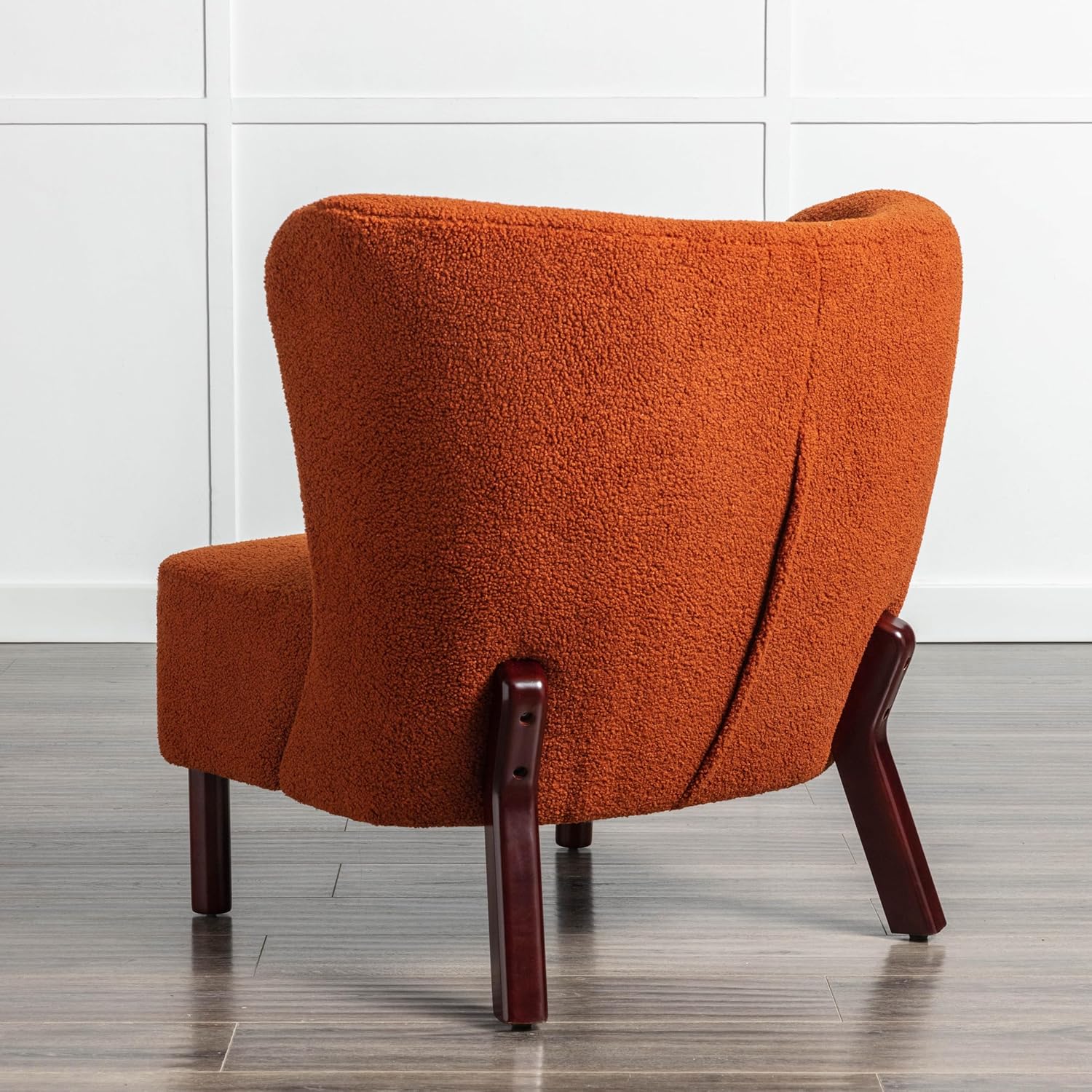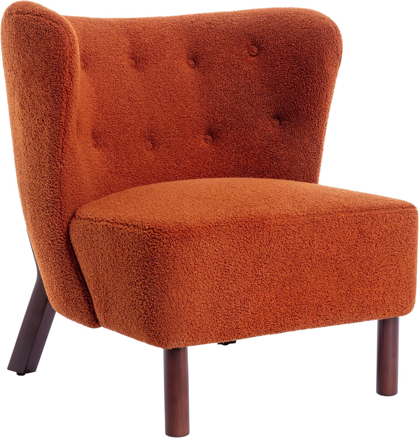 Accent Chair, Upholstered Armless Chair Lambskin Sherpa Single Sofa Chair with Wooden Legs, Modern Reading Chair for Living Room Bedroom Small Spaces Apartment, Burnt Orange