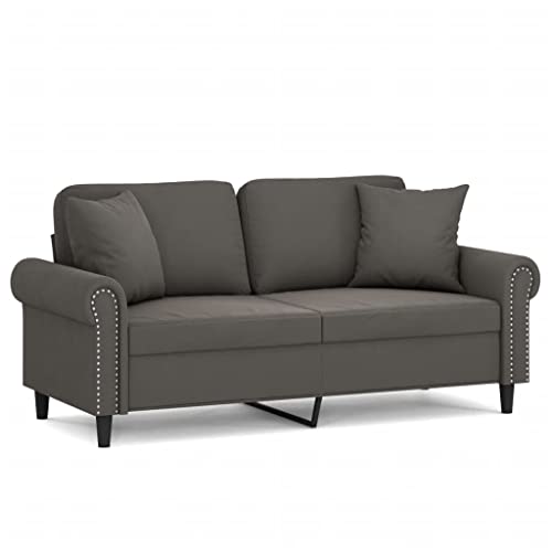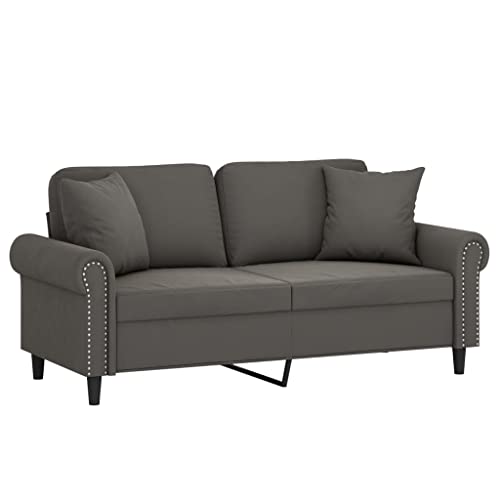 2-Seater Sofa, Lounge Sofa Ottoman Minimalist Sofa Sofa Chair Suitable for House Home Theater Apartment Den with Pillows&Cushions Dark Gray 55.1" Velvet